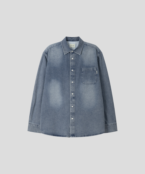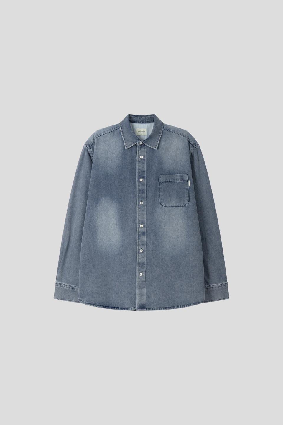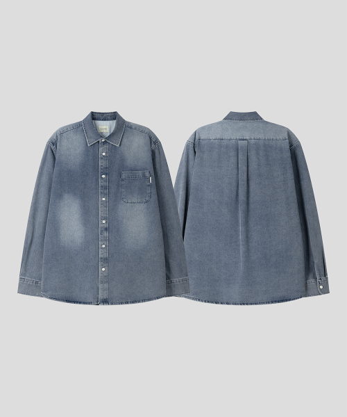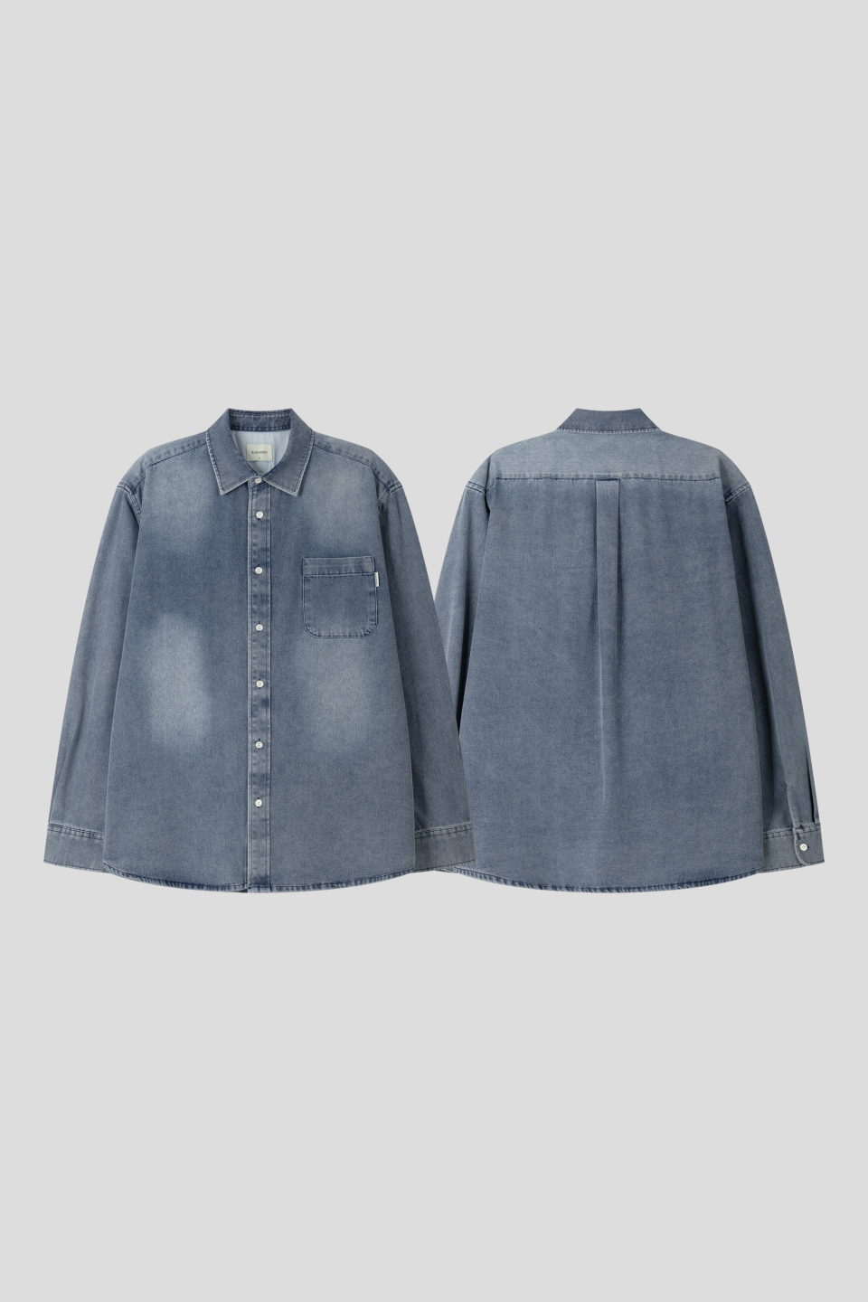 빈티지 워싱 오버핏 데님셔츠 [중청]