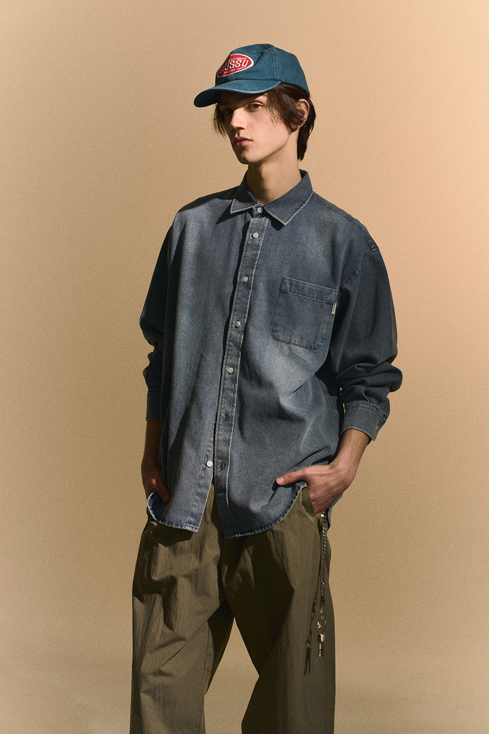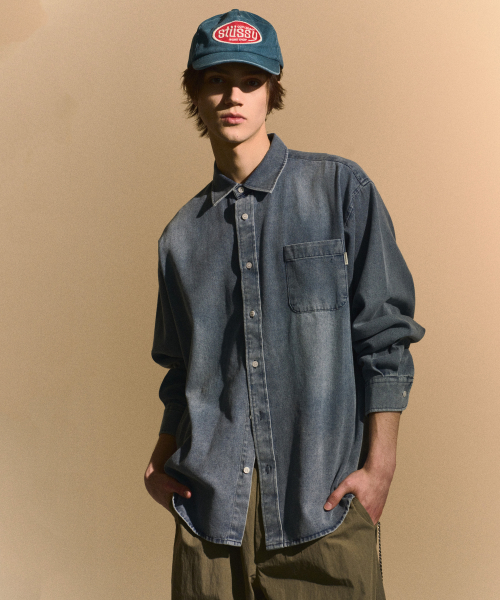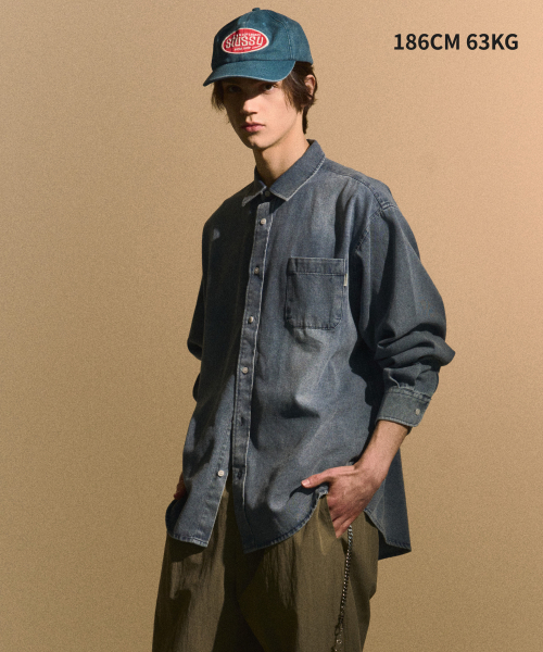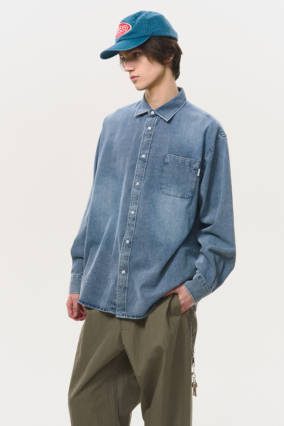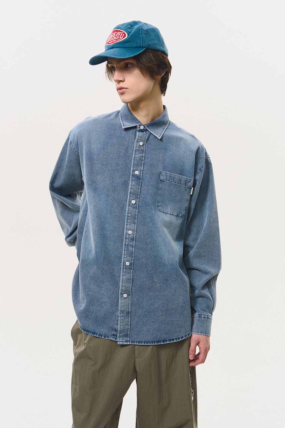 빈티지 워싱 오버핏 데님셔츠 [중청]