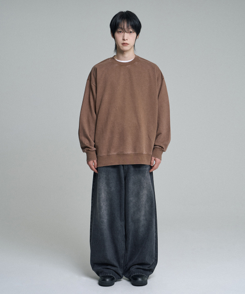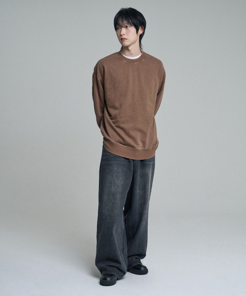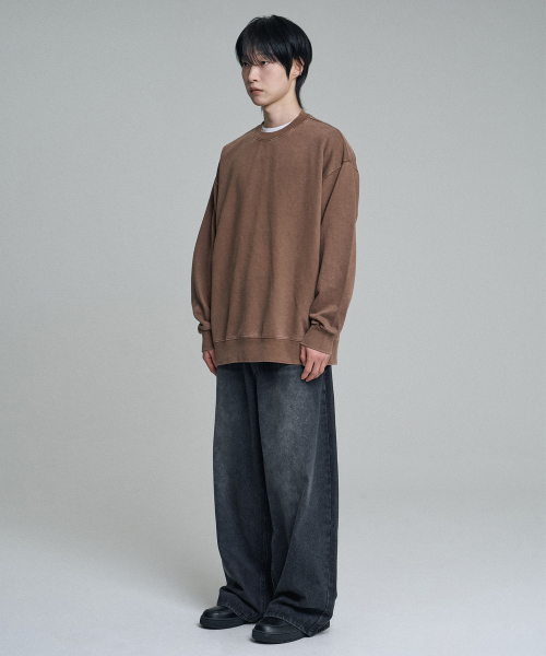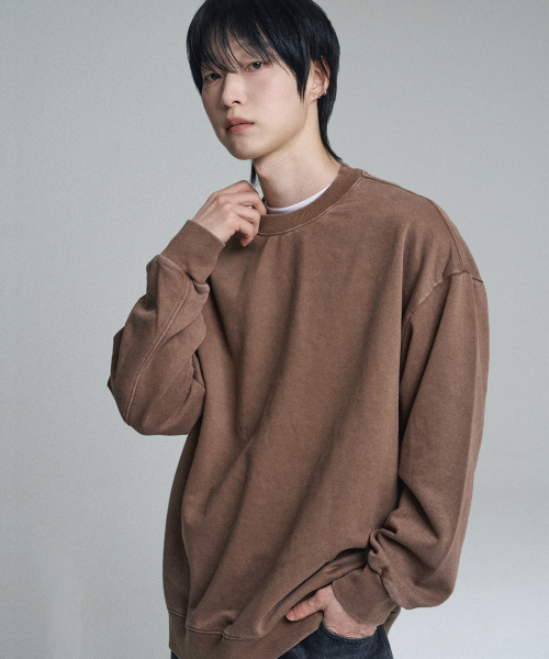 오버핏 피그먼트 맨투맨 스웨트셔츠 브라운