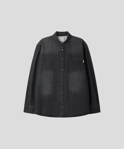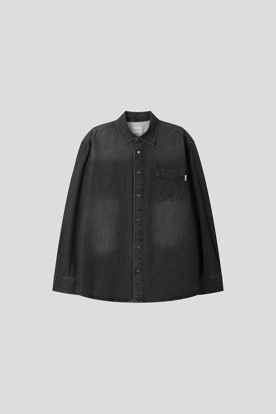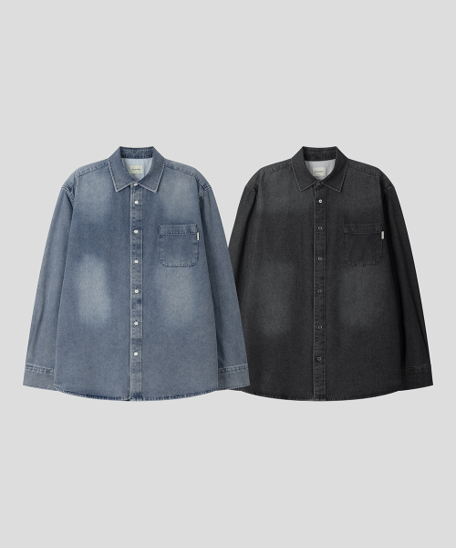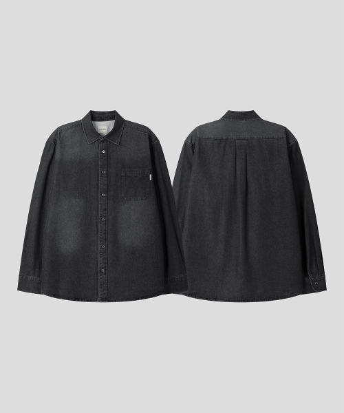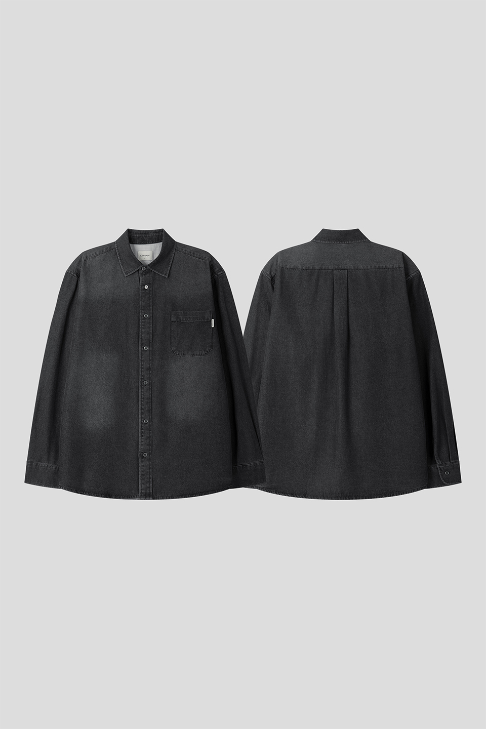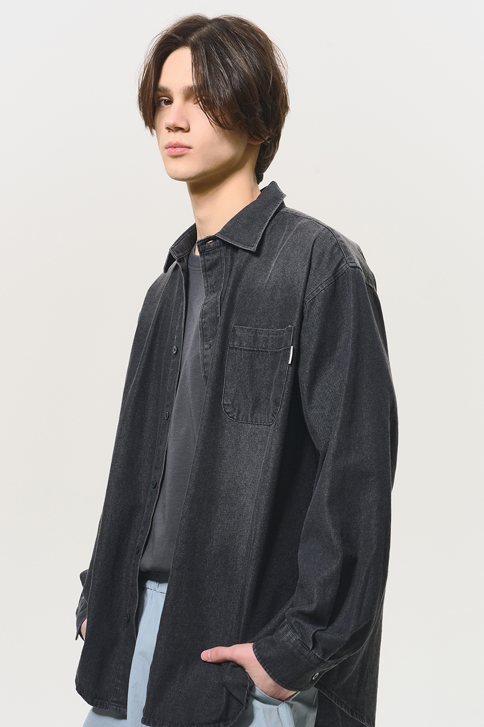 빈티지 워싱 오버핏 데님 셔츠[흑청]