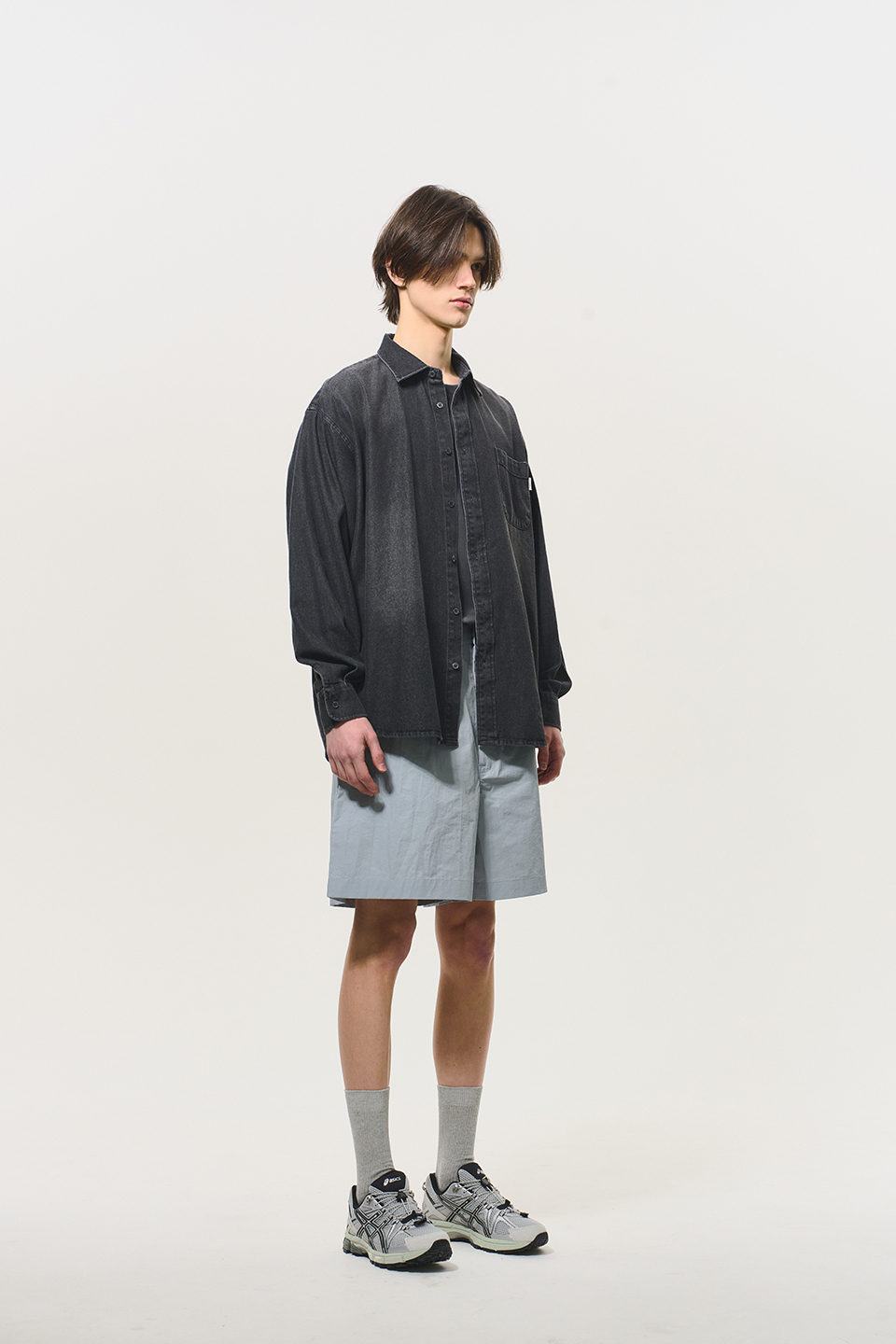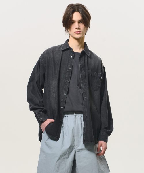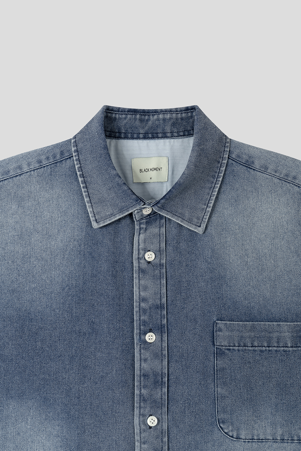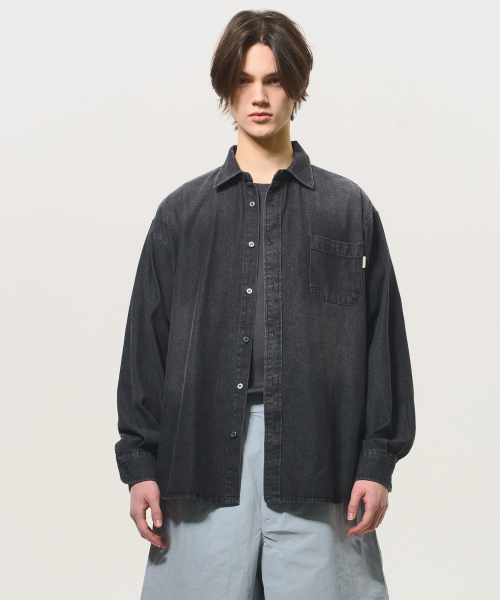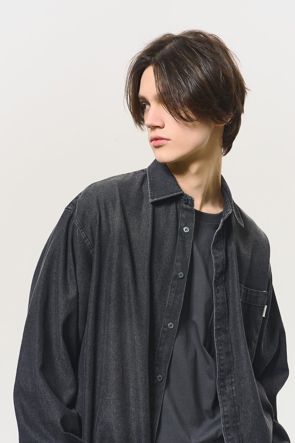 빈티지 워싱 오버핏 데님 셔츠[흑청]