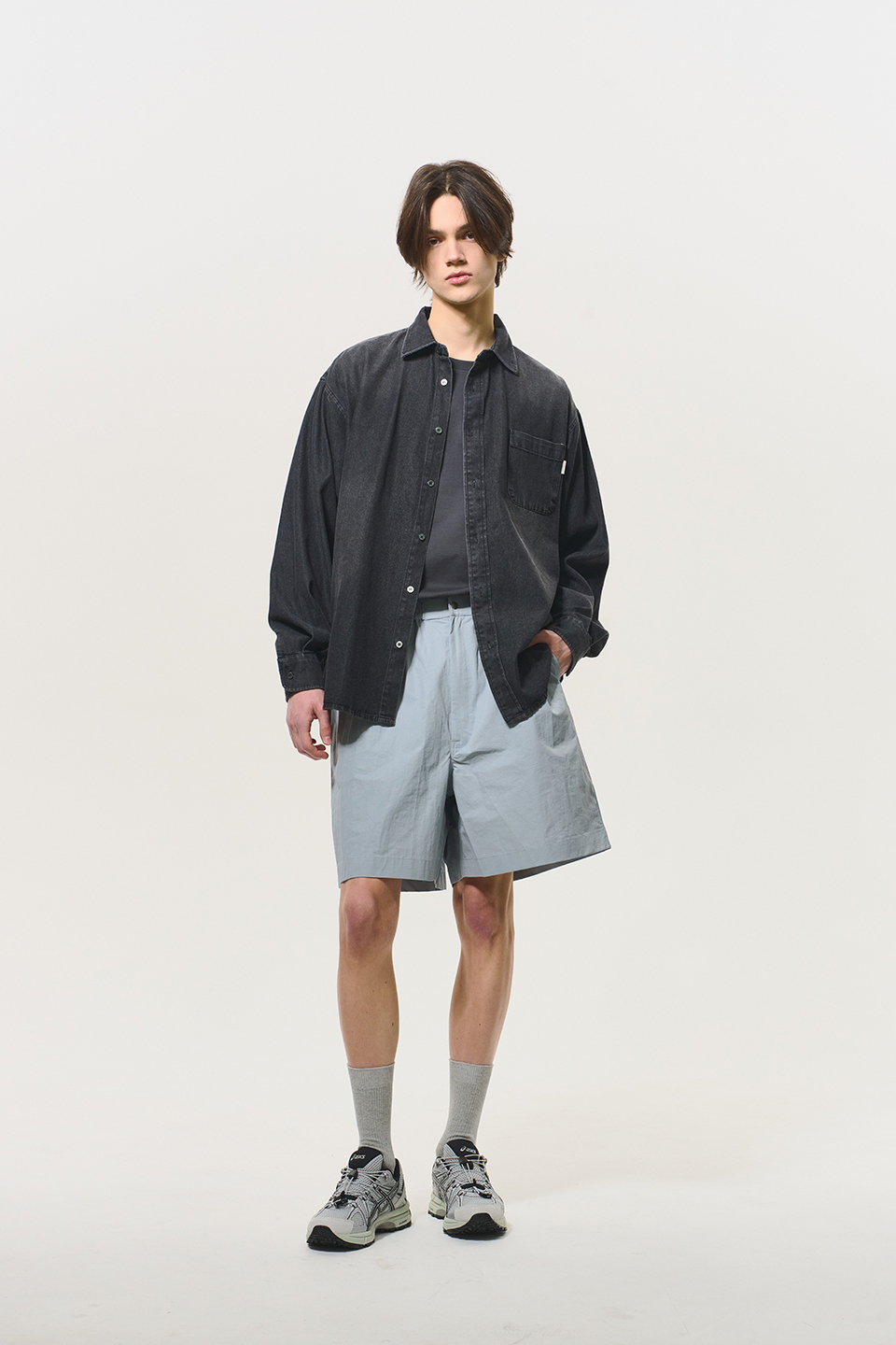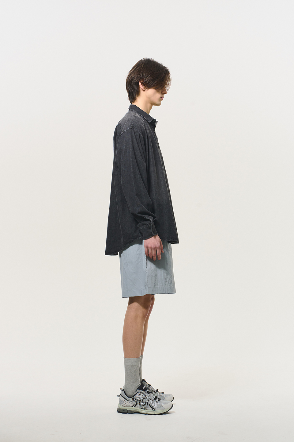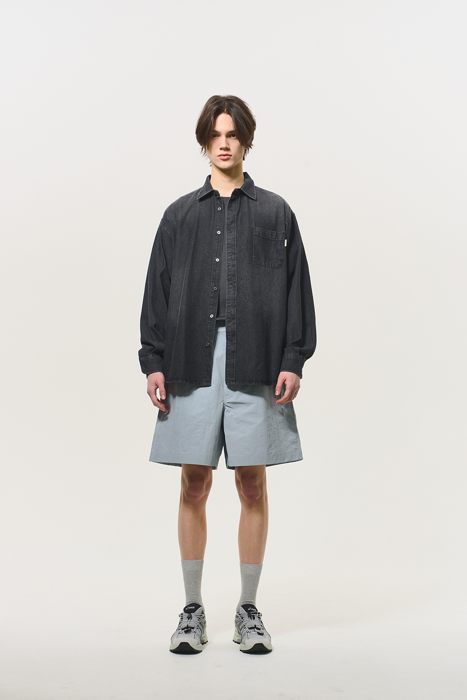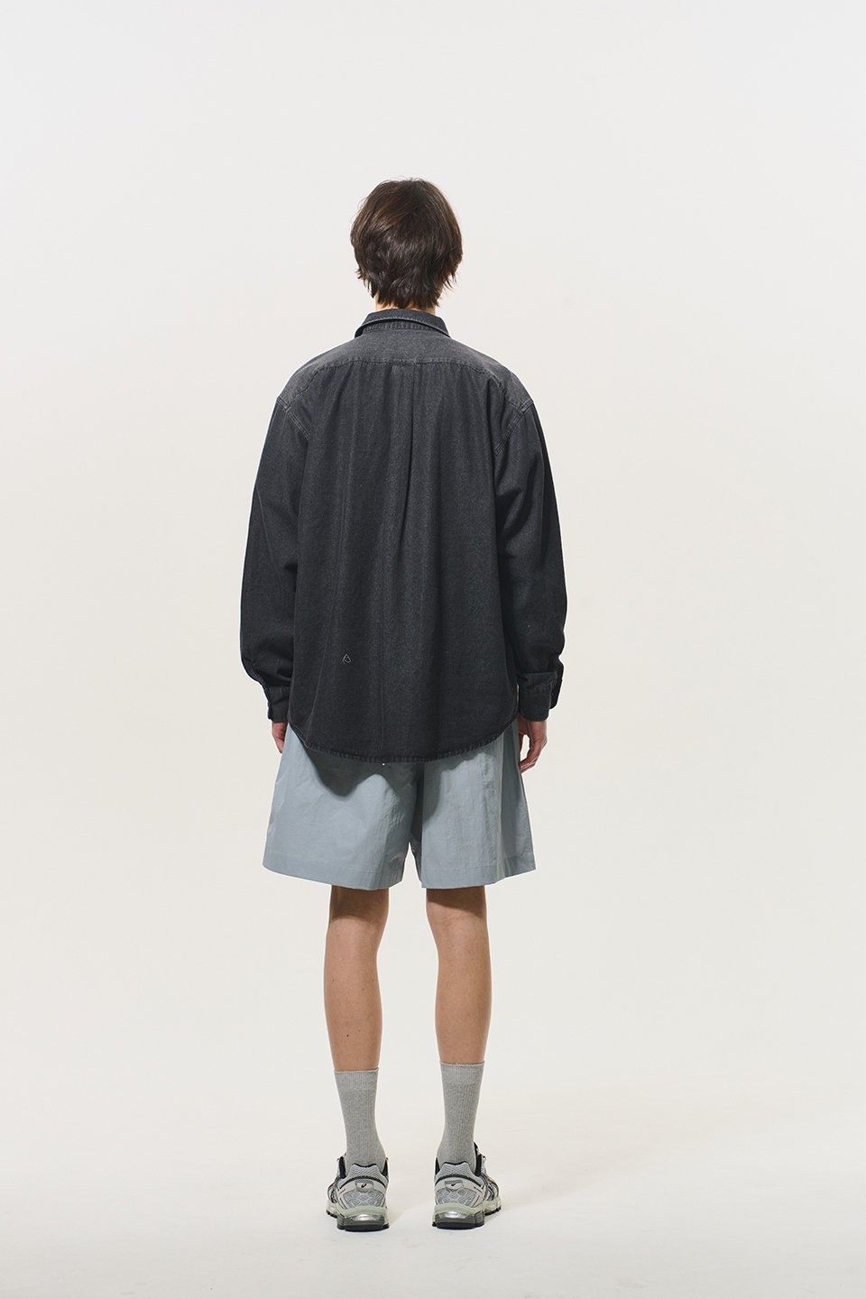 빈티지 워싱 오버핏 데님 셔츠[흑청]