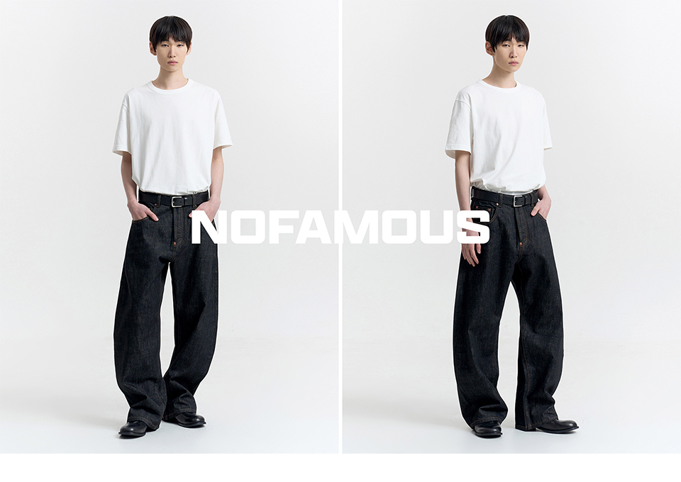 노페이머스(NOFAMOUS)는 시간이 지날수록 자연스럽게 스며드는 깊이 있는 색과 질감을 연구하는 데님 브랜드입니다.