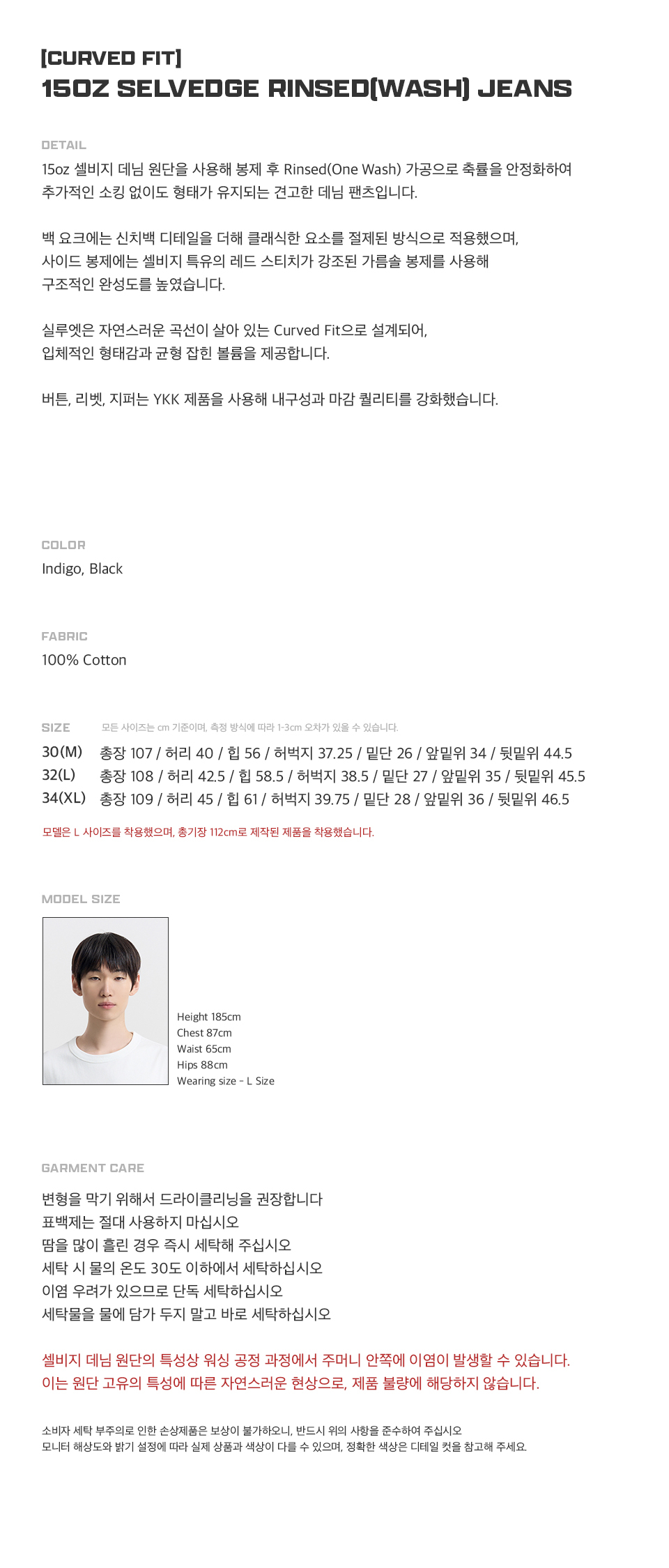 15oz Selvedge Rinsed(Wash) Jeans (Black)