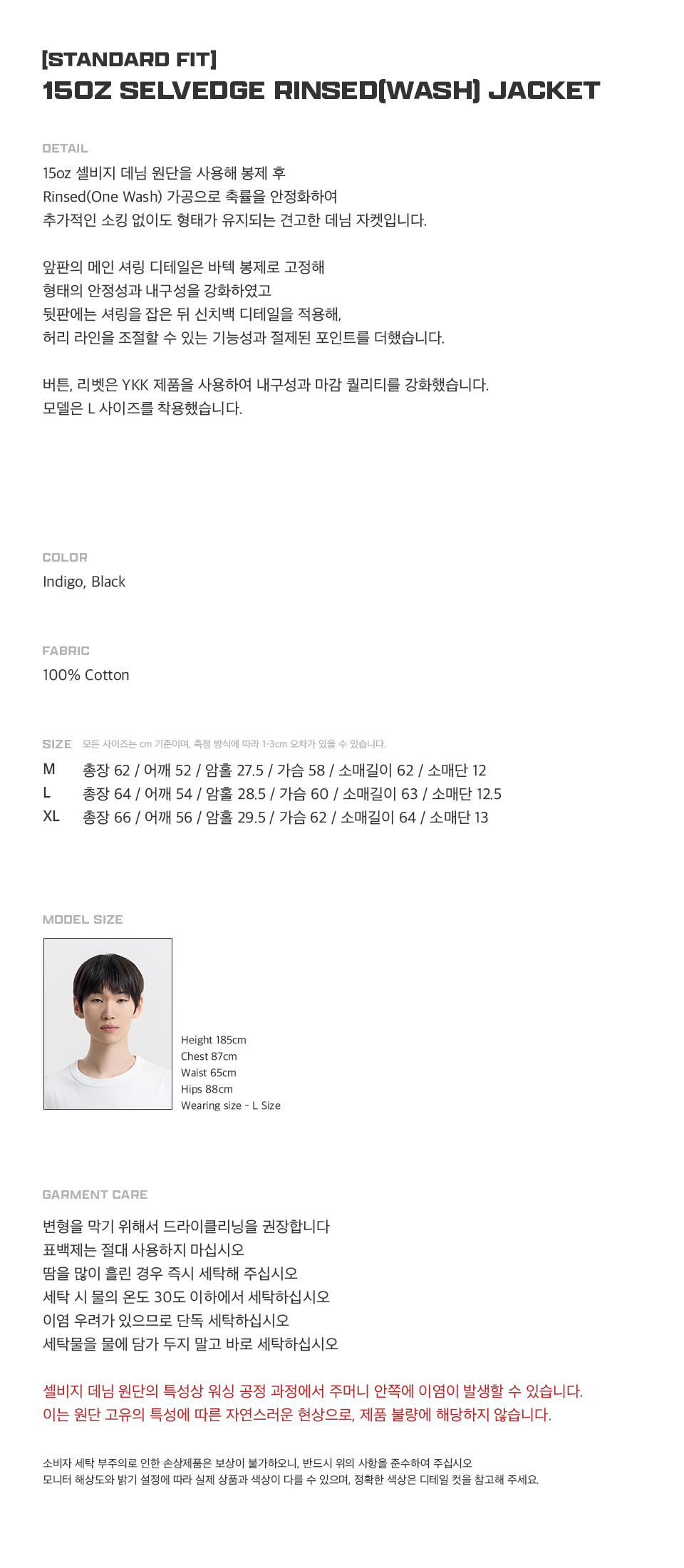 15oz Selvedge Rinsed(Wash)Set-up (Black)