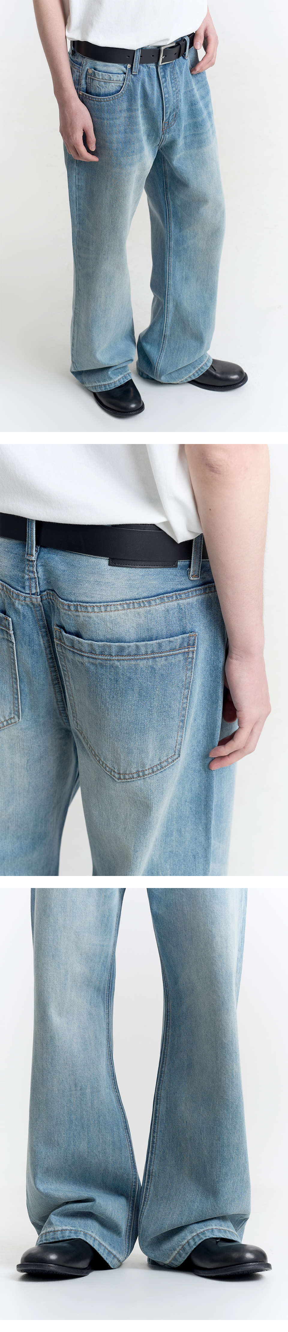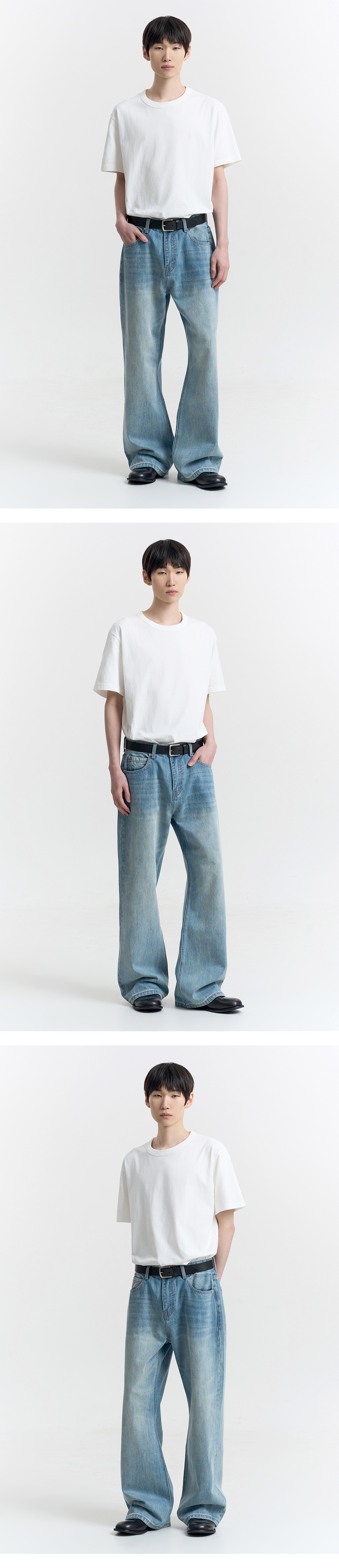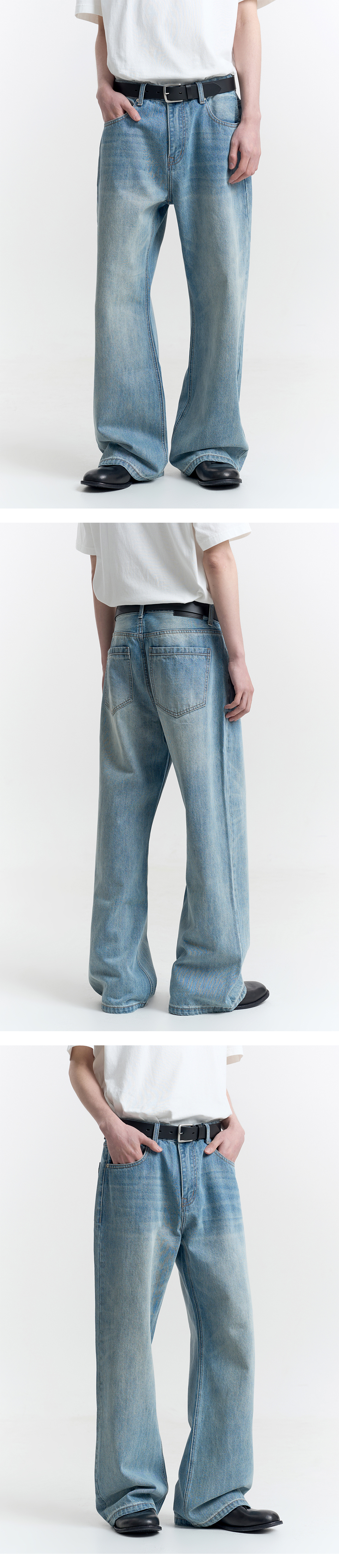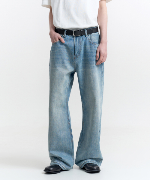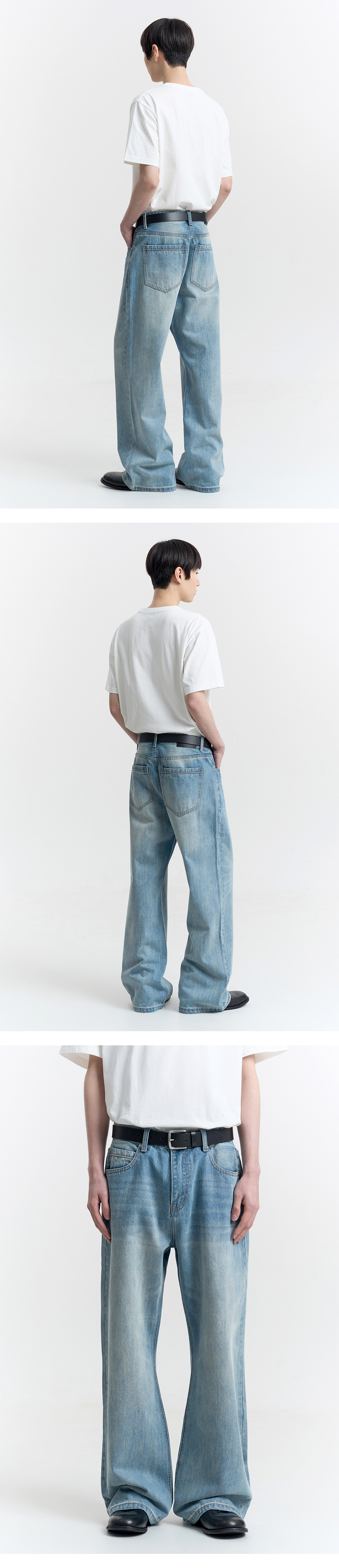 13oz Wide Flare Salt Washed Jeans (Light Blue)
