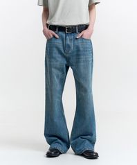 13oz Wide Flare Salt Washed Jeans (Blue)