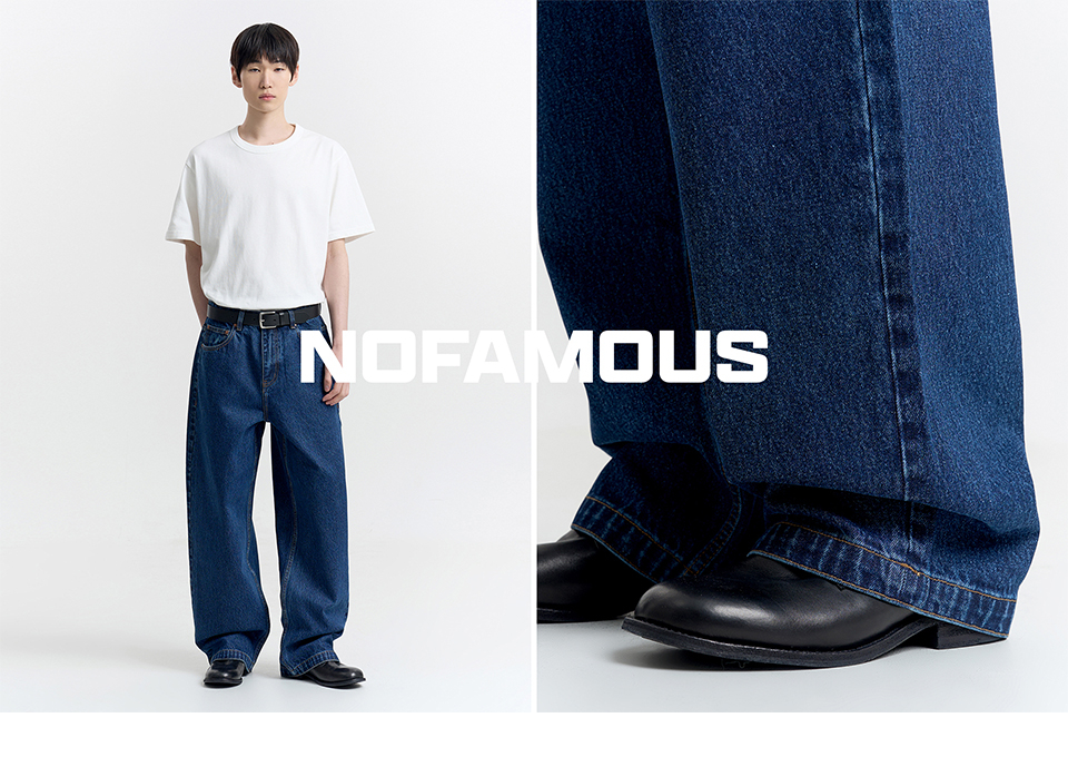 노페이머스(NOFAMOUS)는 시간이 지날수록 자연스럽게 스며드는 깊이 있는 색과 질감을 연구하는 데님 브랜드입니다.