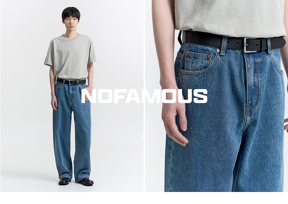 노페이머스(NOFAMOUS)는 시간이 지날수록 자연스럽게 스며드는 깊이 있는 색과 질감을 연구하는 데님 브랜드입니다.