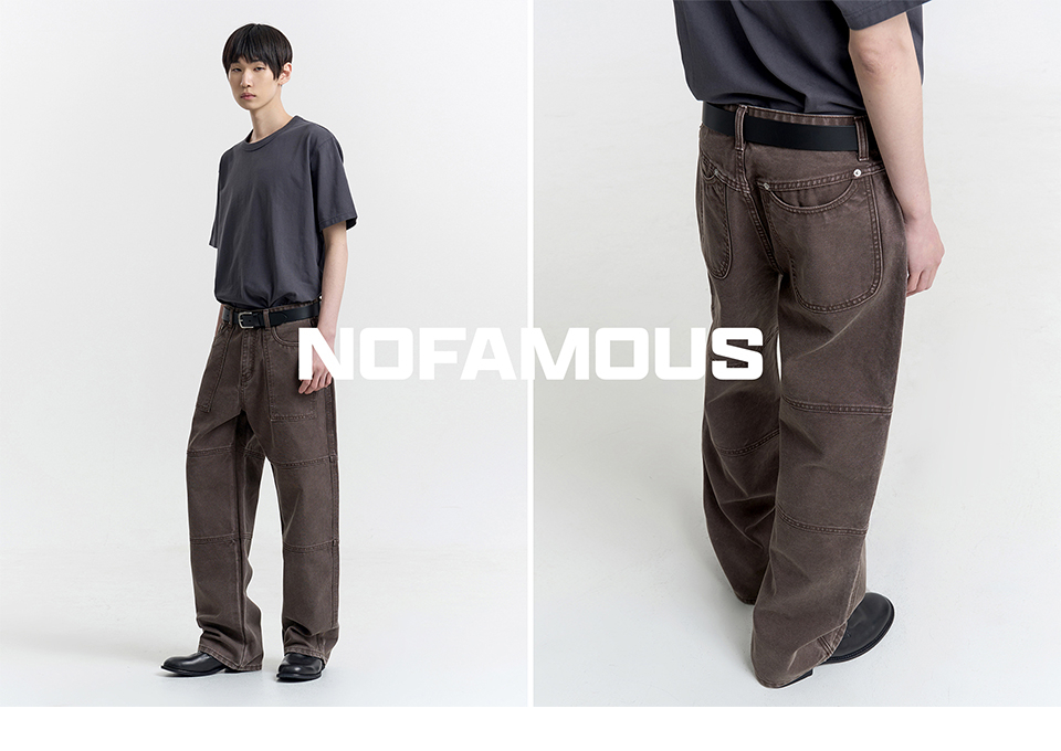 노페이머스(NOFAMOUS)는 시간이 지날수록 자연스럽게 스며드는 깊이 있는 색과 질감을 연구하는 데님 브랜드입니다.