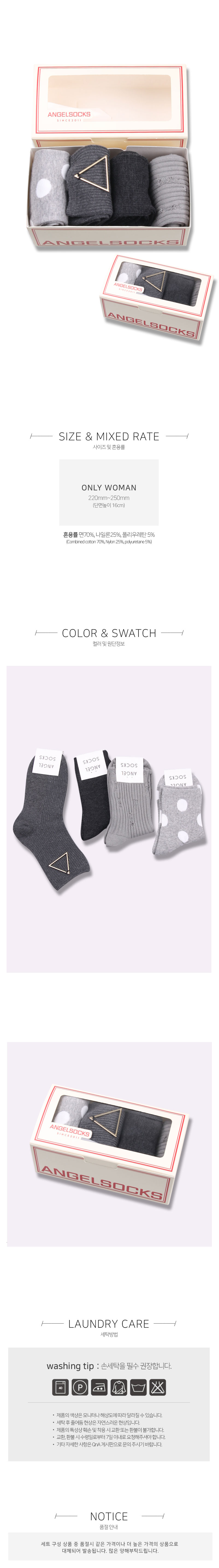 ANGEL SOCKS(엔젤삭스)는 디자이너가 직접 제작, 생산, 초이스 하는 풋 웨어 전문 브랜드입니다. 직, HAND LINKED TOE 등의 고급 편직기술과 앙고라, 울, 슬러브사 등의 다양한 소재를 사용하여, 모던한 색상과 패턴의 상품부터 컬러풀하고 위트 넘치는 다양한 상품을 제작합니다.