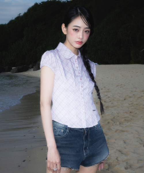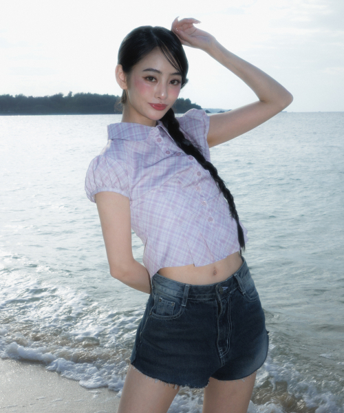 M : Length 51 / Shoulder 37.5 / Chest 44 / Sleeve 12 / Hem 38.5