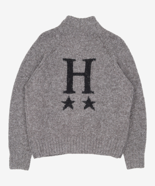 울블렌드 백 자카드 그래픽 니트 카디건 그레이 M