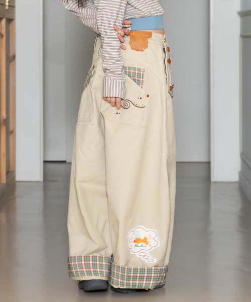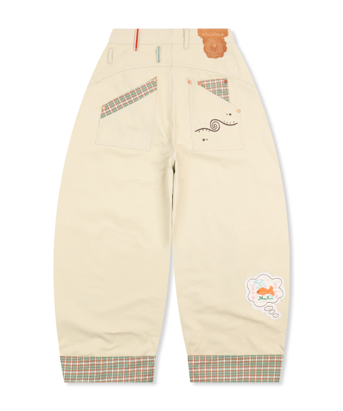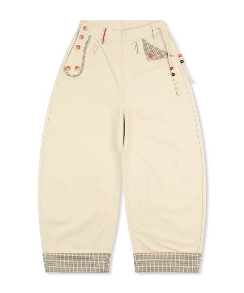 WXP085 시아와세 체크 배색 벌룬 팬츠 (BEIGE)