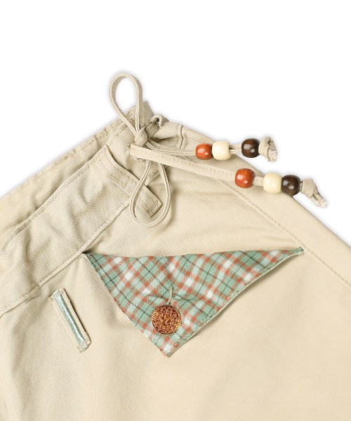 WXP085 시아와세 체크 배색 벌룬 팬츠 (KHAKI)