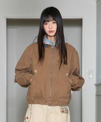 WXJ036 하루미치 체크 배색 워크자켓 (BROWN)