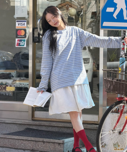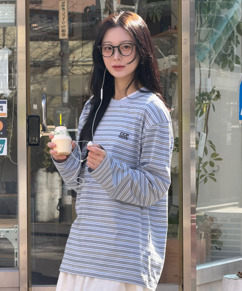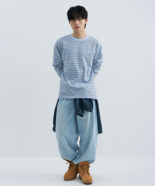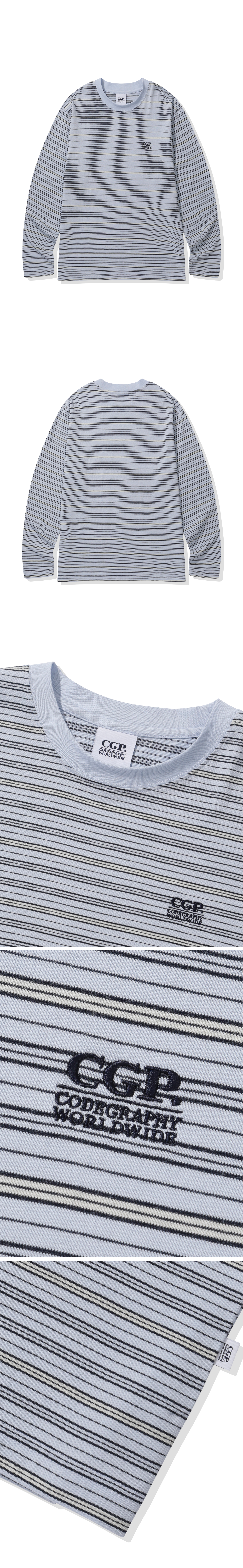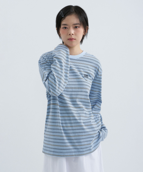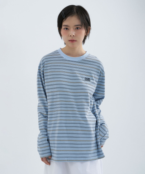 멀티 스트라이프 롱슬리브-스카이 블루