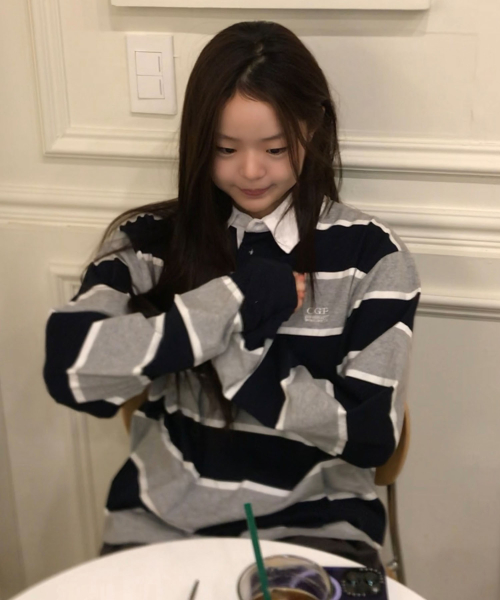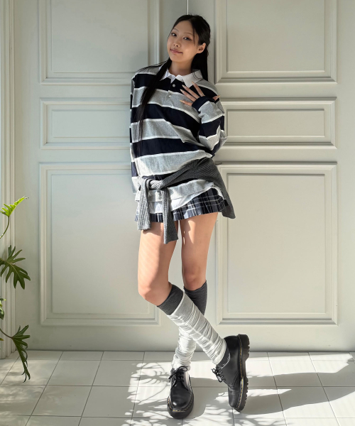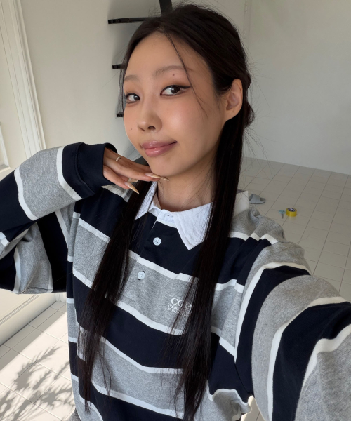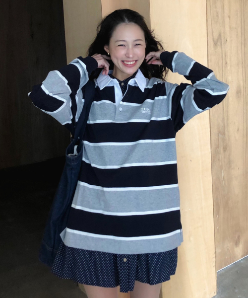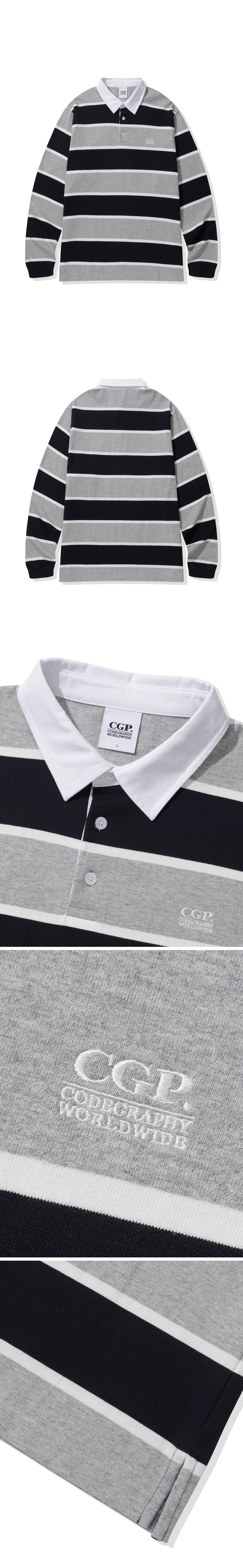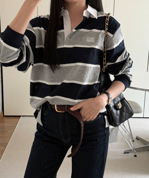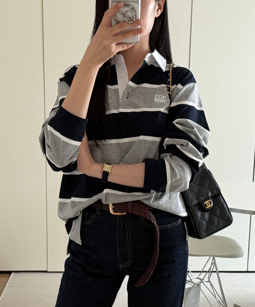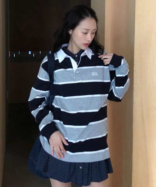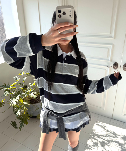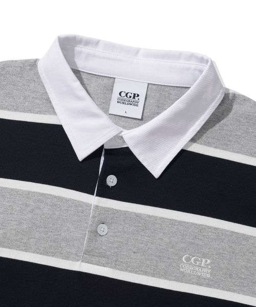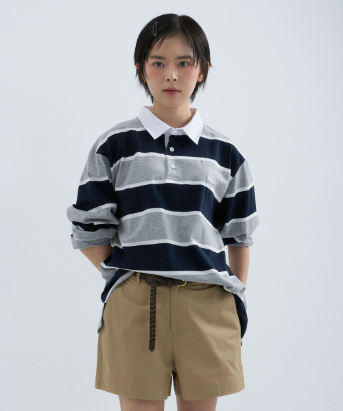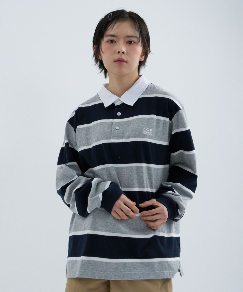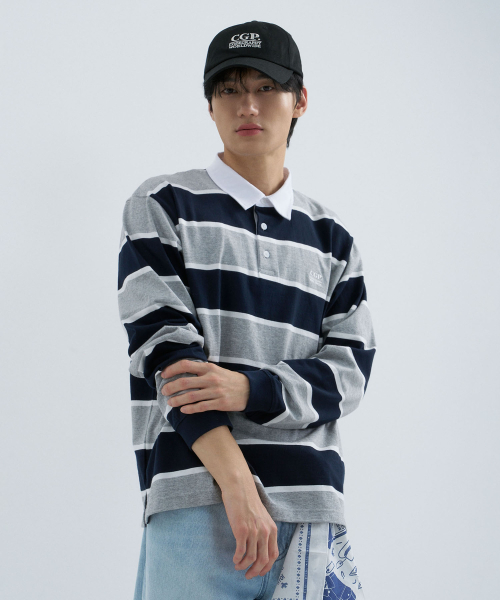 스몰 스퀘어 로고 스트라이프 럭비티-다크 네이비