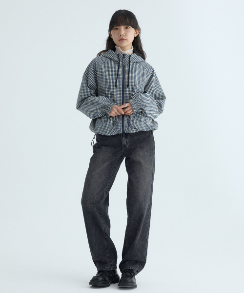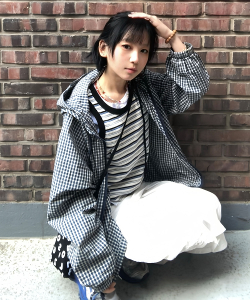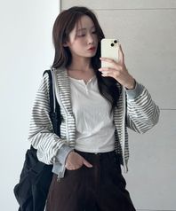 (우먼) 라이트 웨이트 스트라이프 후드 집업-그레이
