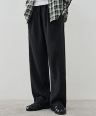 와이드 밴딩 슬릭 플리츠 팬츠 [BLACK]
