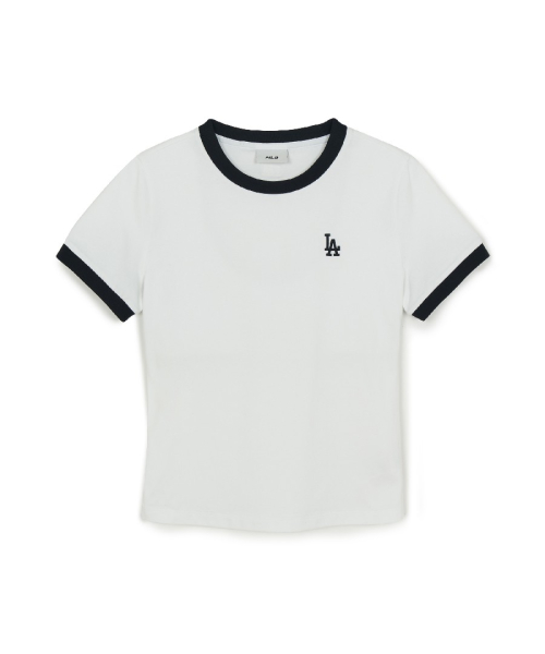 여성 베이직 스몰로고 링거 티셔츠 LA (White)