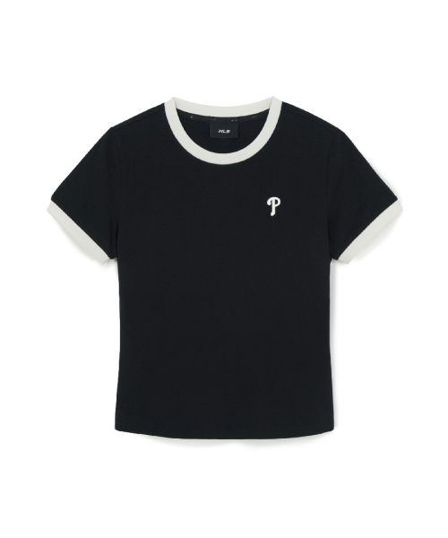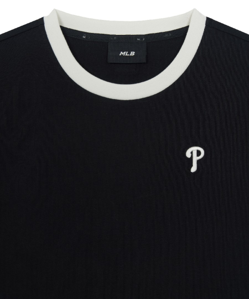 여성 베이직 스몰로고 링거 티셔츠 PHI (Black)