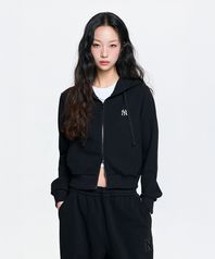 여성 베이직 와플 컴포트핏 후드집업 NY (Black)