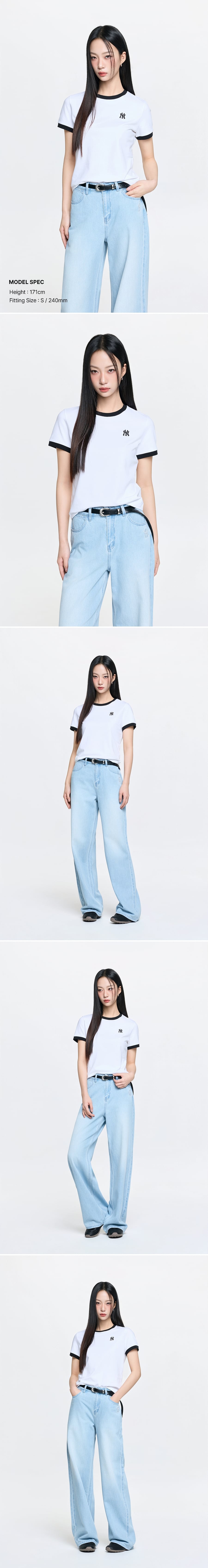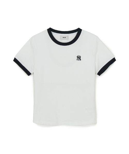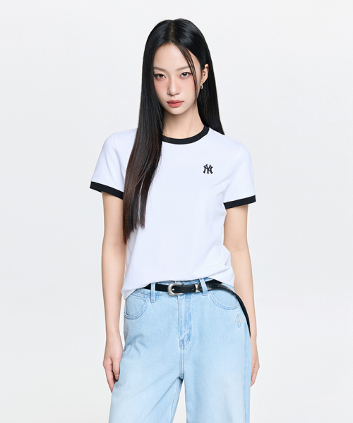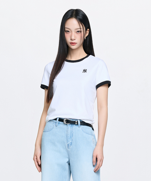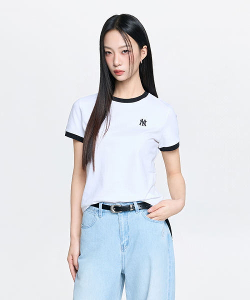 여성 베이직 스몰로고 링거 티셔츠 NY (White)