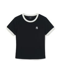 여성 베이직 스몰로고 링거 티셔츠 NY (Black)
