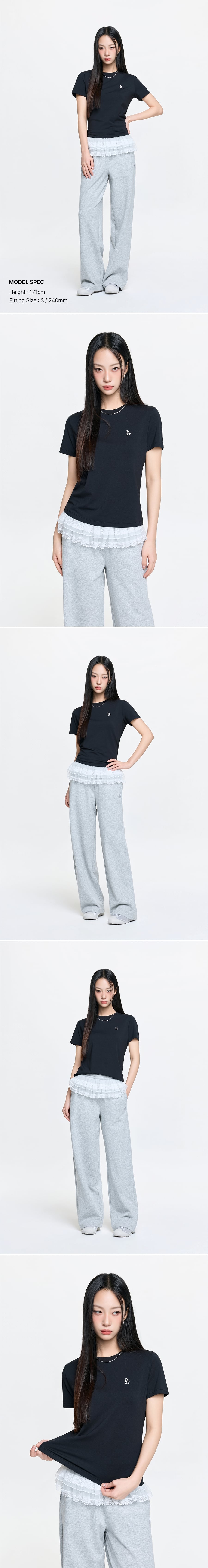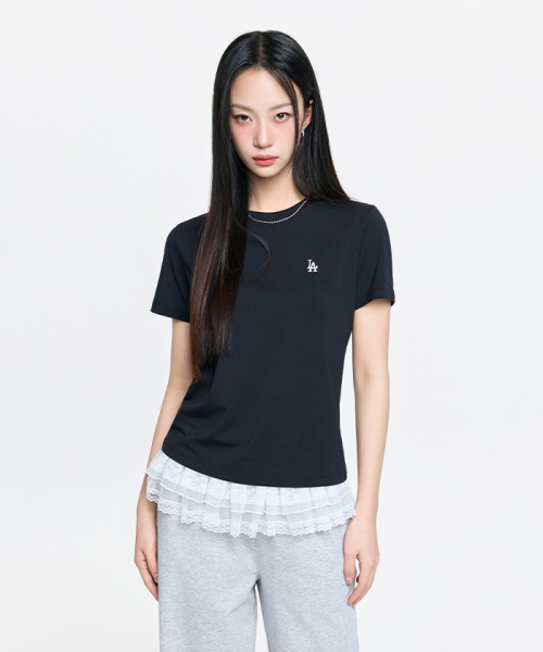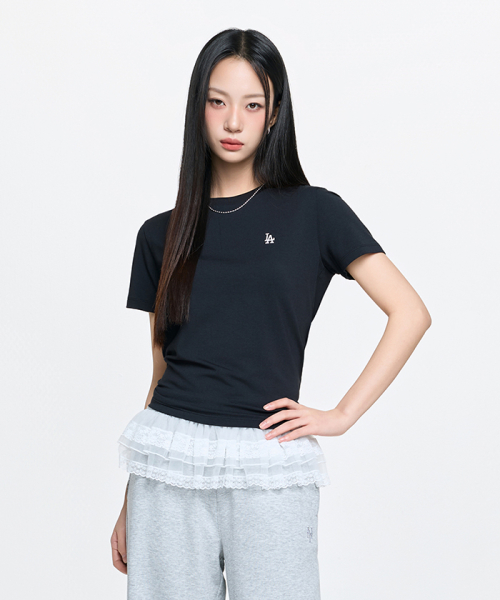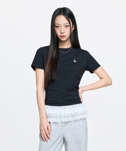 여성 베이직 슬림핏 반팔 티셔츠 LA (Black)