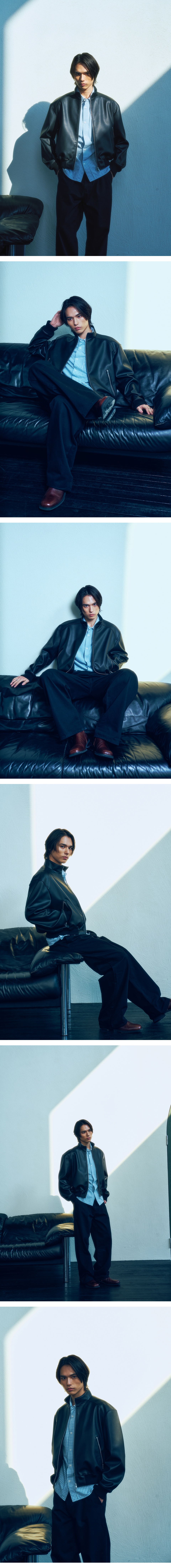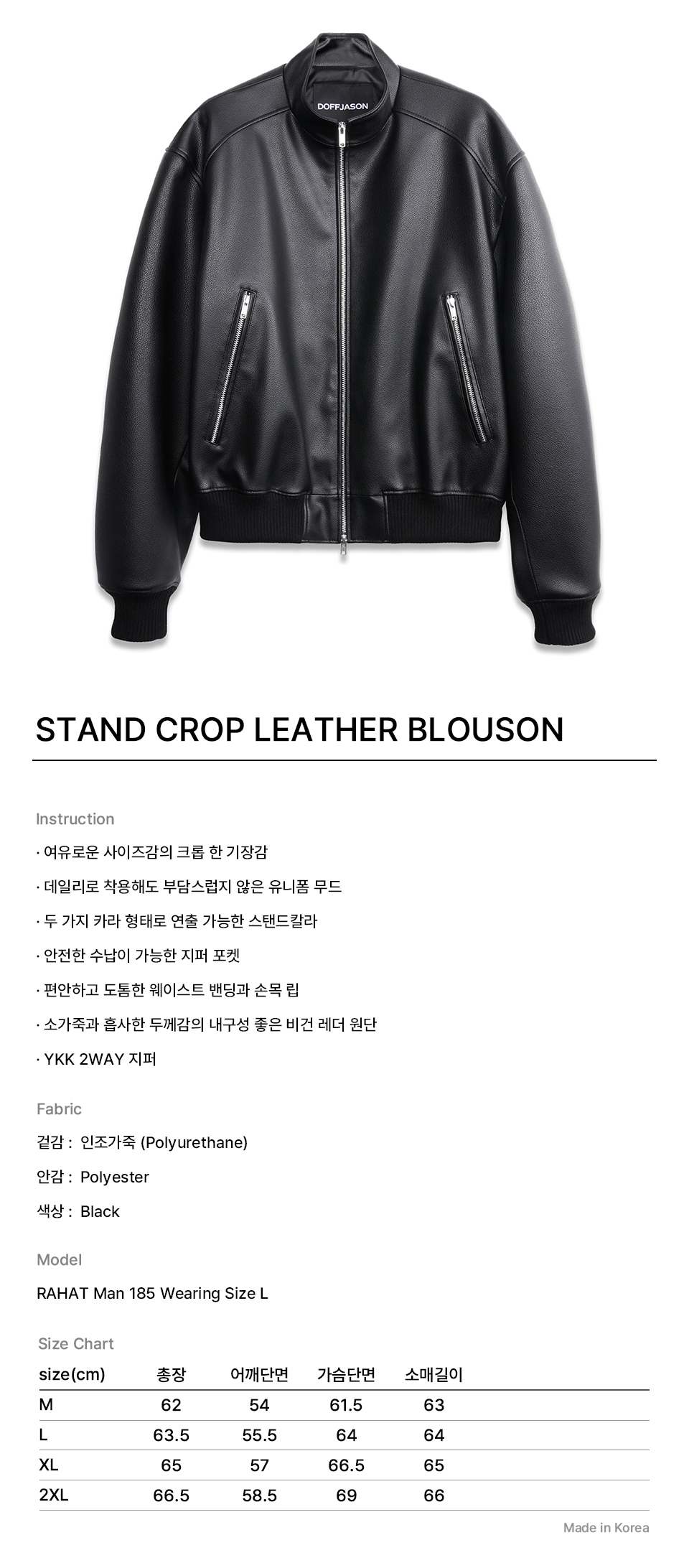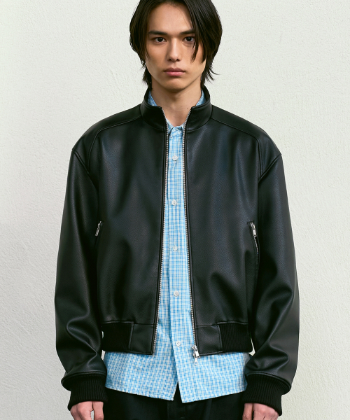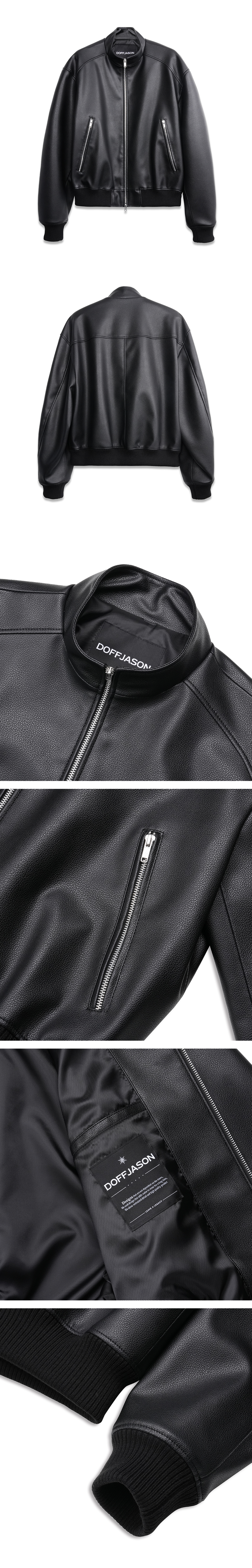 스탠드 크롭 레더 블루종 BLACK