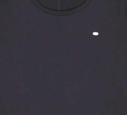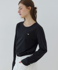 로고 실키 라운드 넥 슬리브 티셔츠 - Black