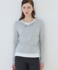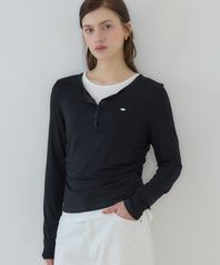 소프트 레이어드 버튼 넥 티셔츠 - Black