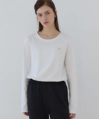 로고 실키 라운드 넥 슬리브 티셔츠 - White