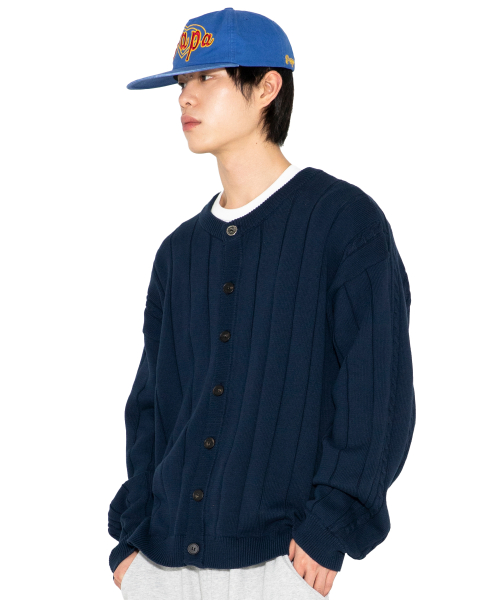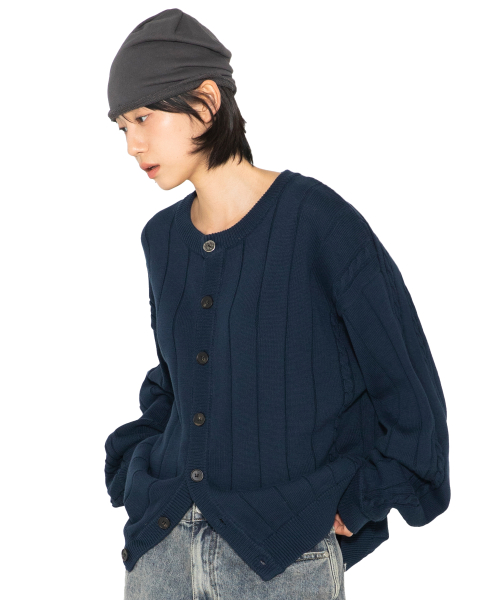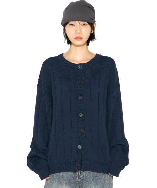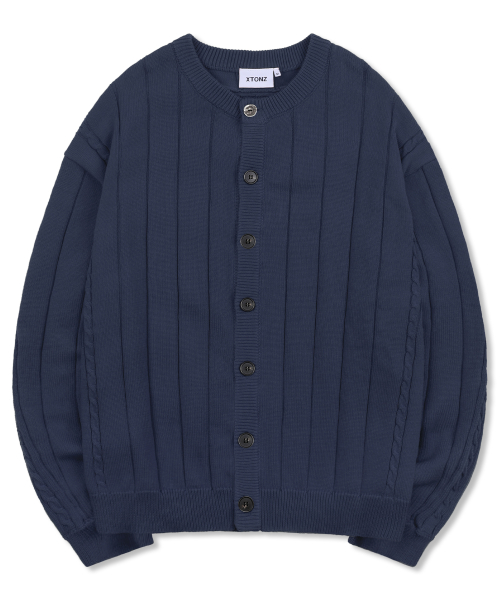XTK178 메탈 버튼 라운드 니트 가디건 (BLUE)