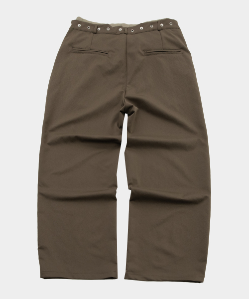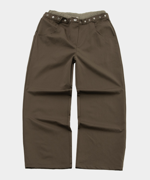 아일렛 포인트 트렁크 레이어드 새깅 와이드 히든 스트링 팬츠 [브라운]