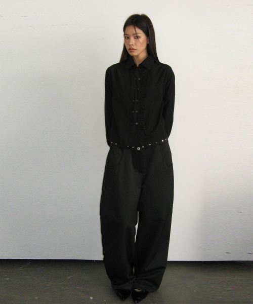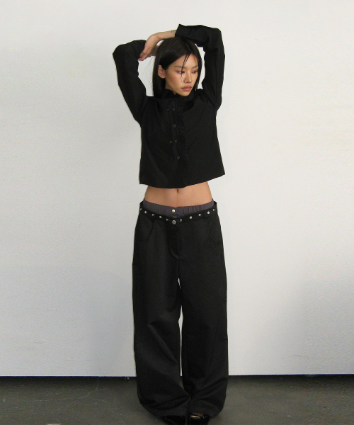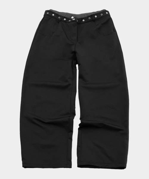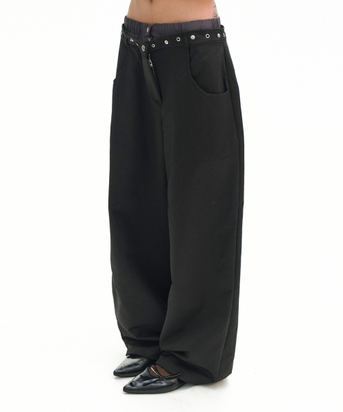 아일렛 포인트 트렁크 레이어드 새깅 와이드 히든 스트링 팬츠 [블랙]