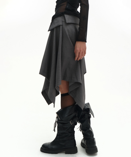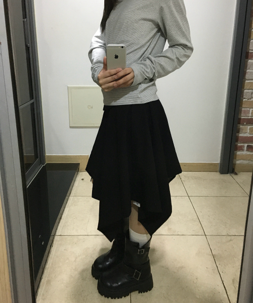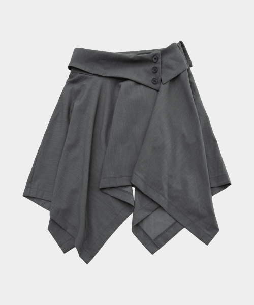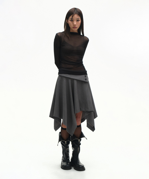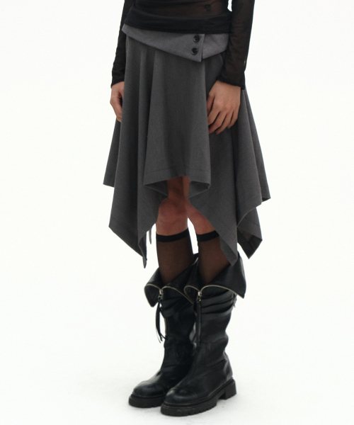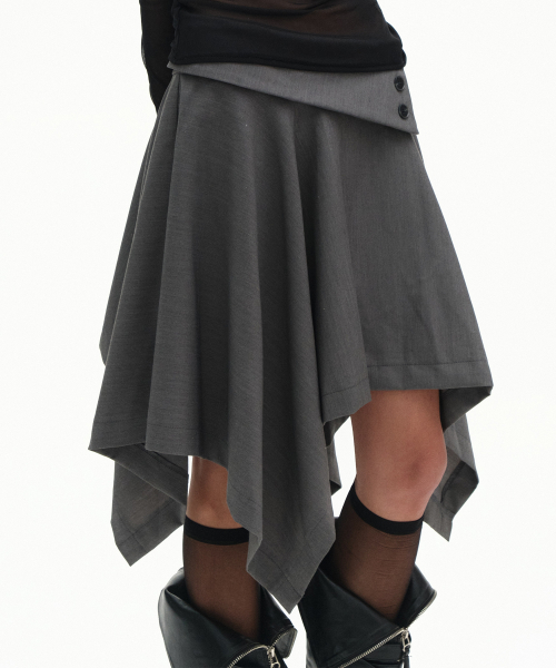 더블 버튼 드레이프 레이어드 미디 언발란스 플레어 스커트 _2COLOR