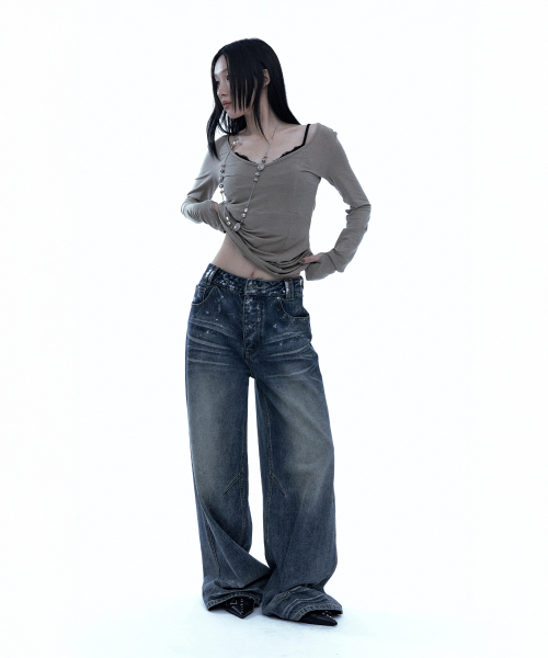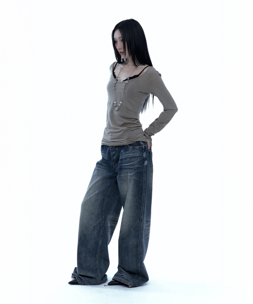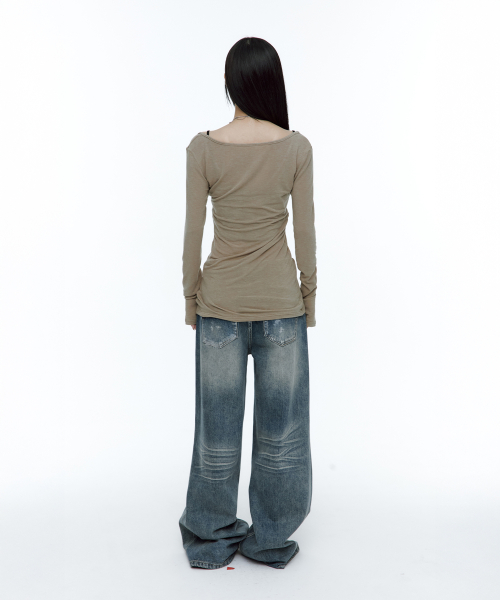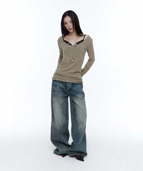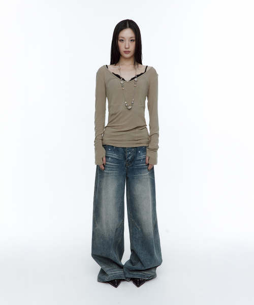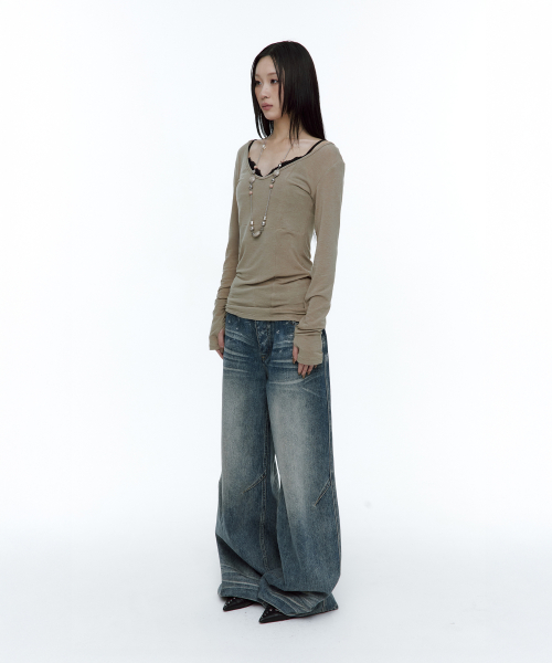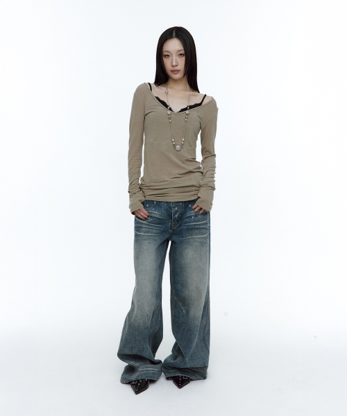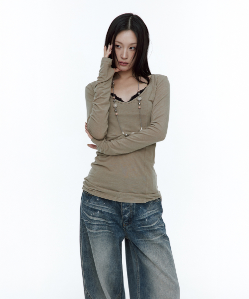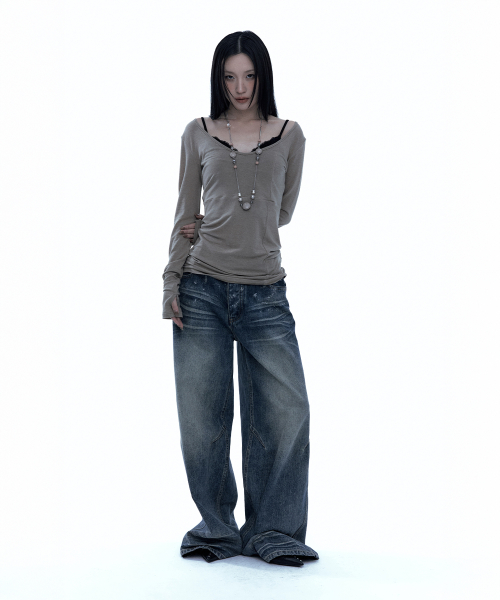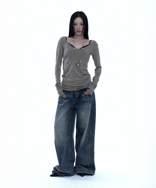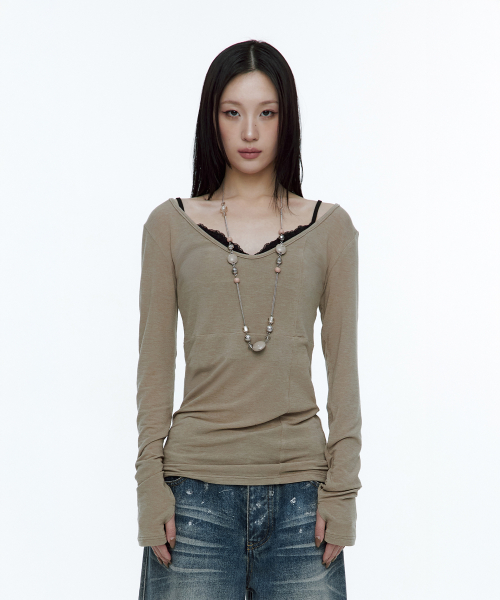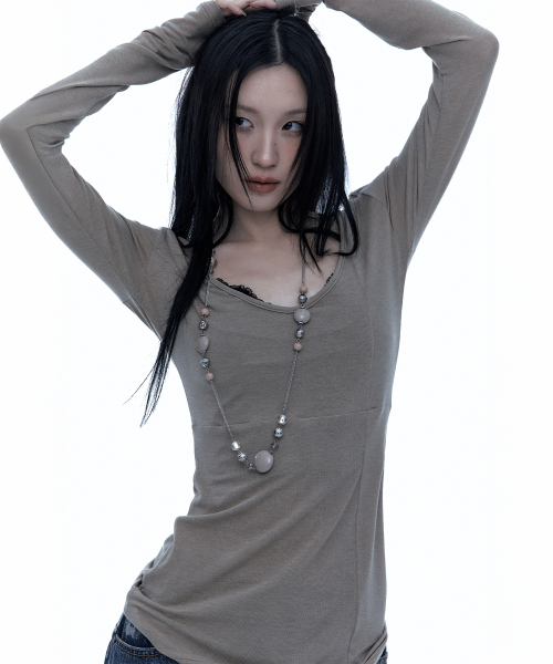 [유인 PICK] Layered Bustier Long Sleeve (FL-105_Charcoal Melange)