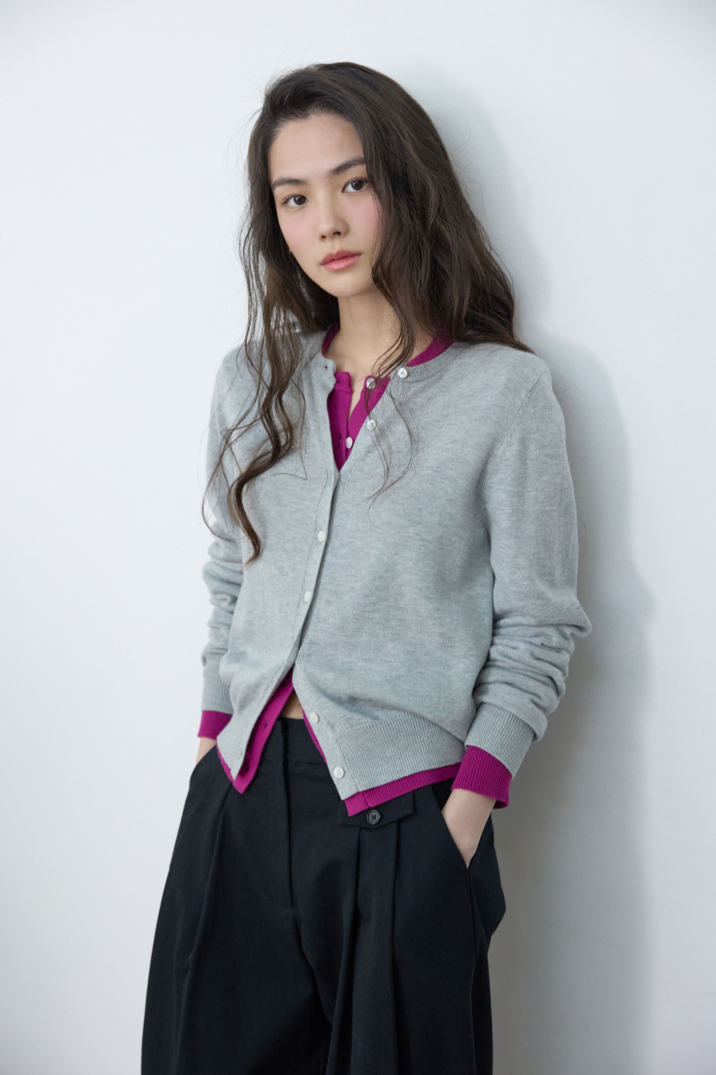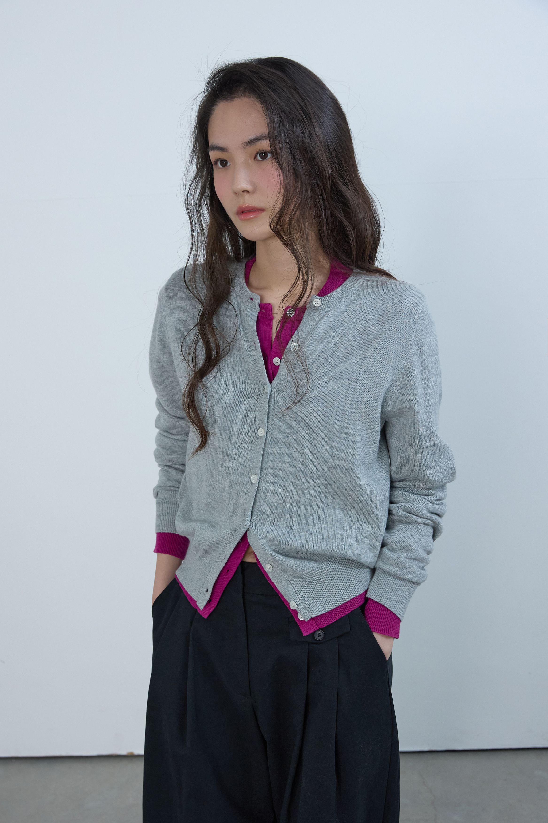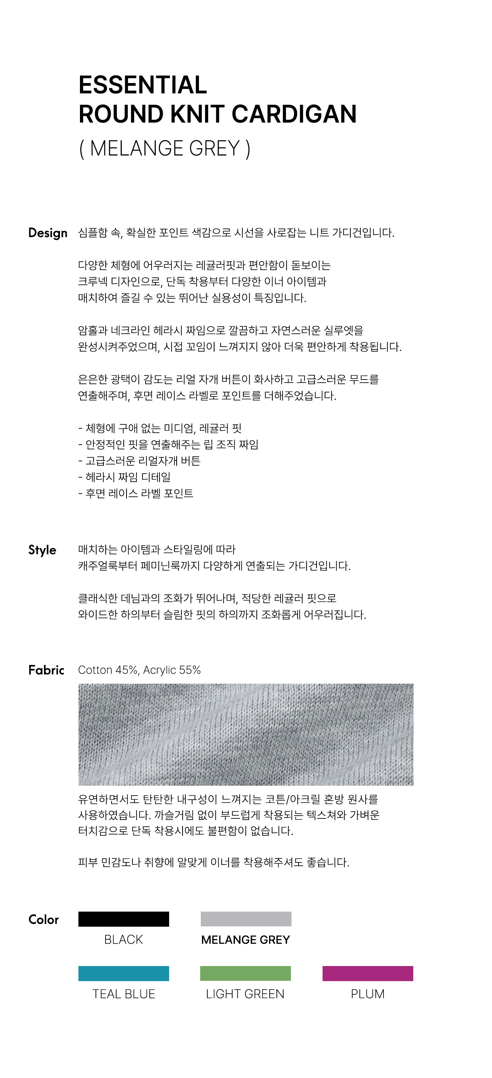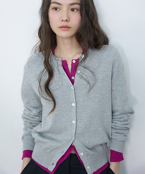 에센셜 라운드 니트 가디건 멜란지 그레이