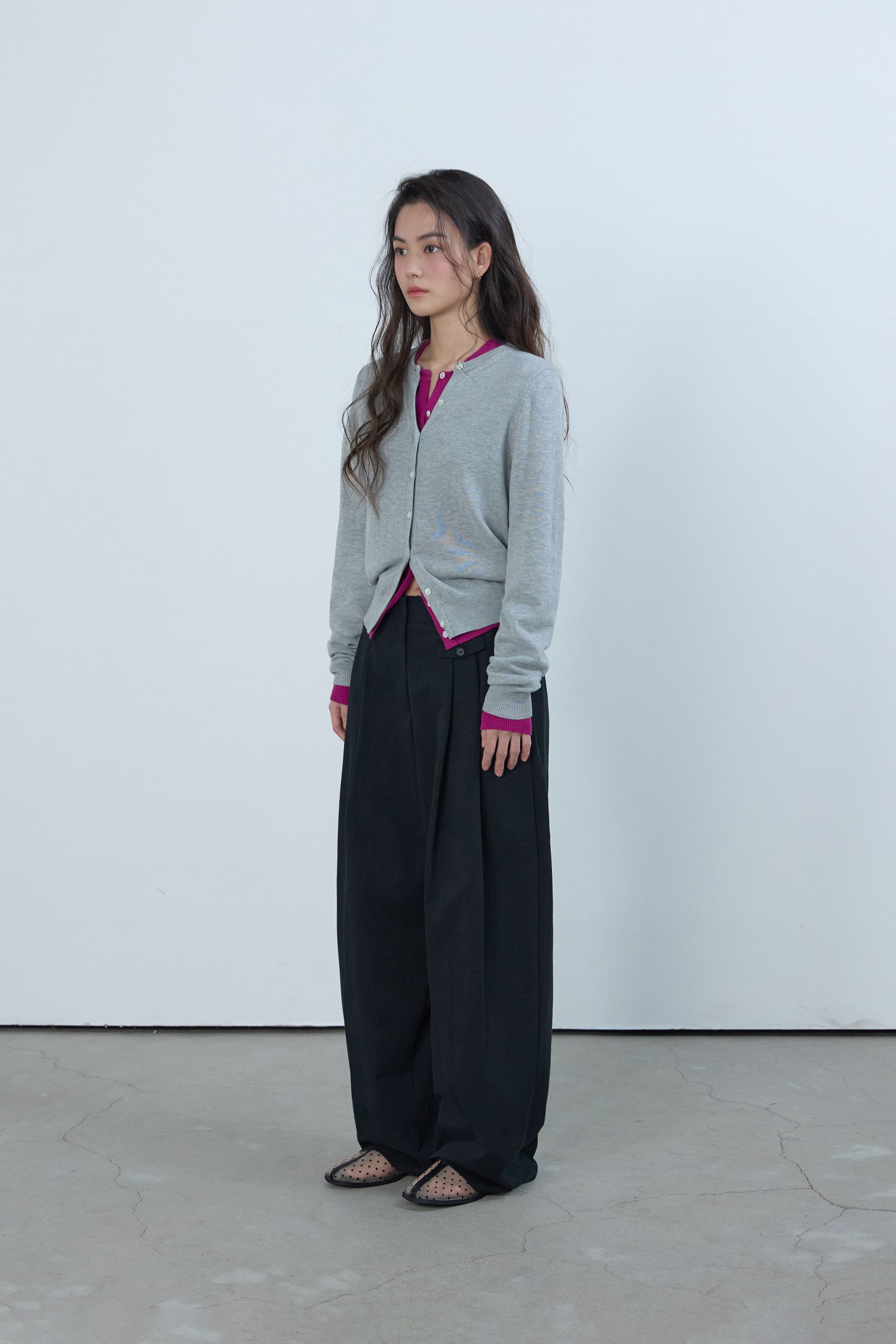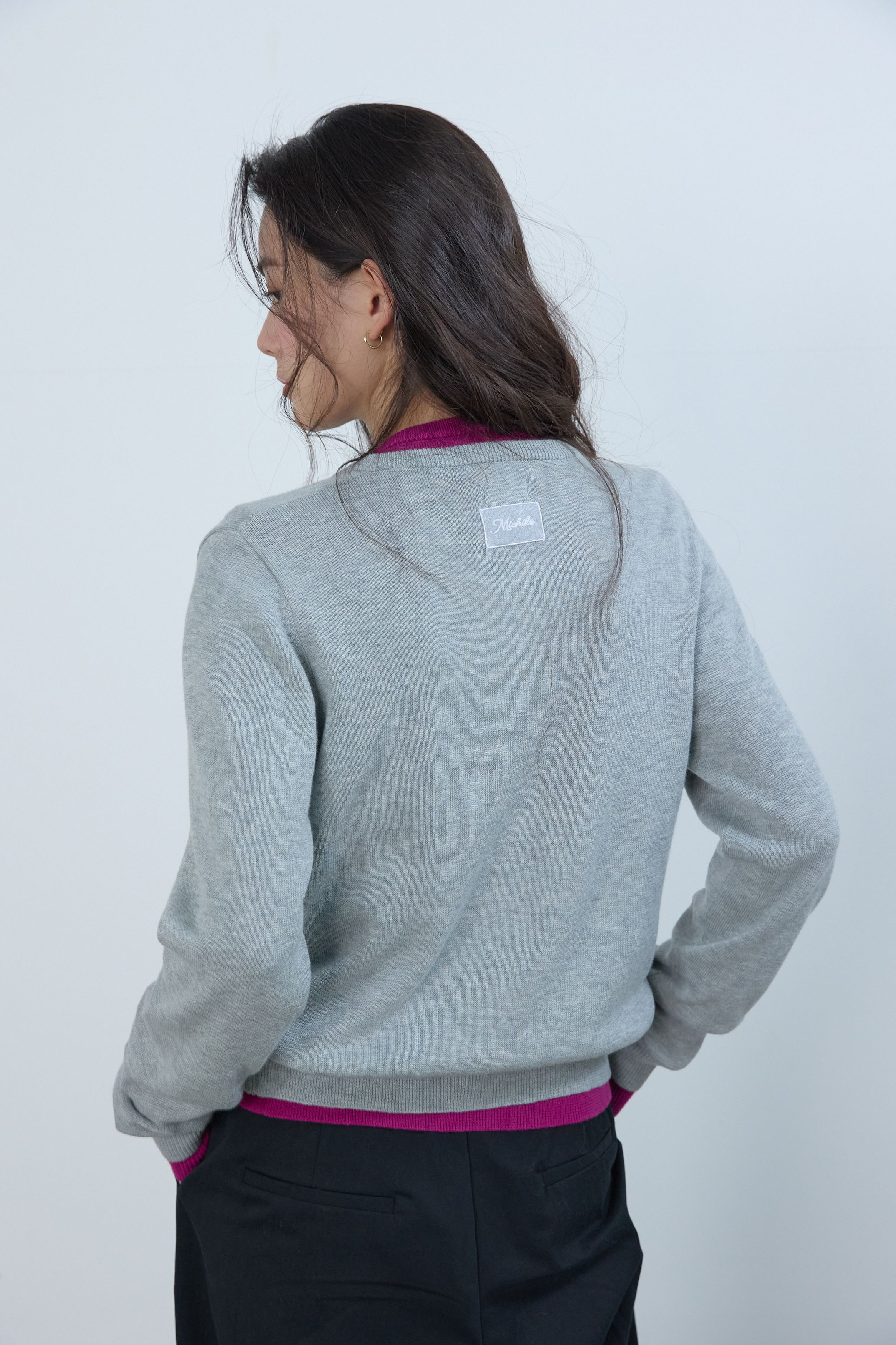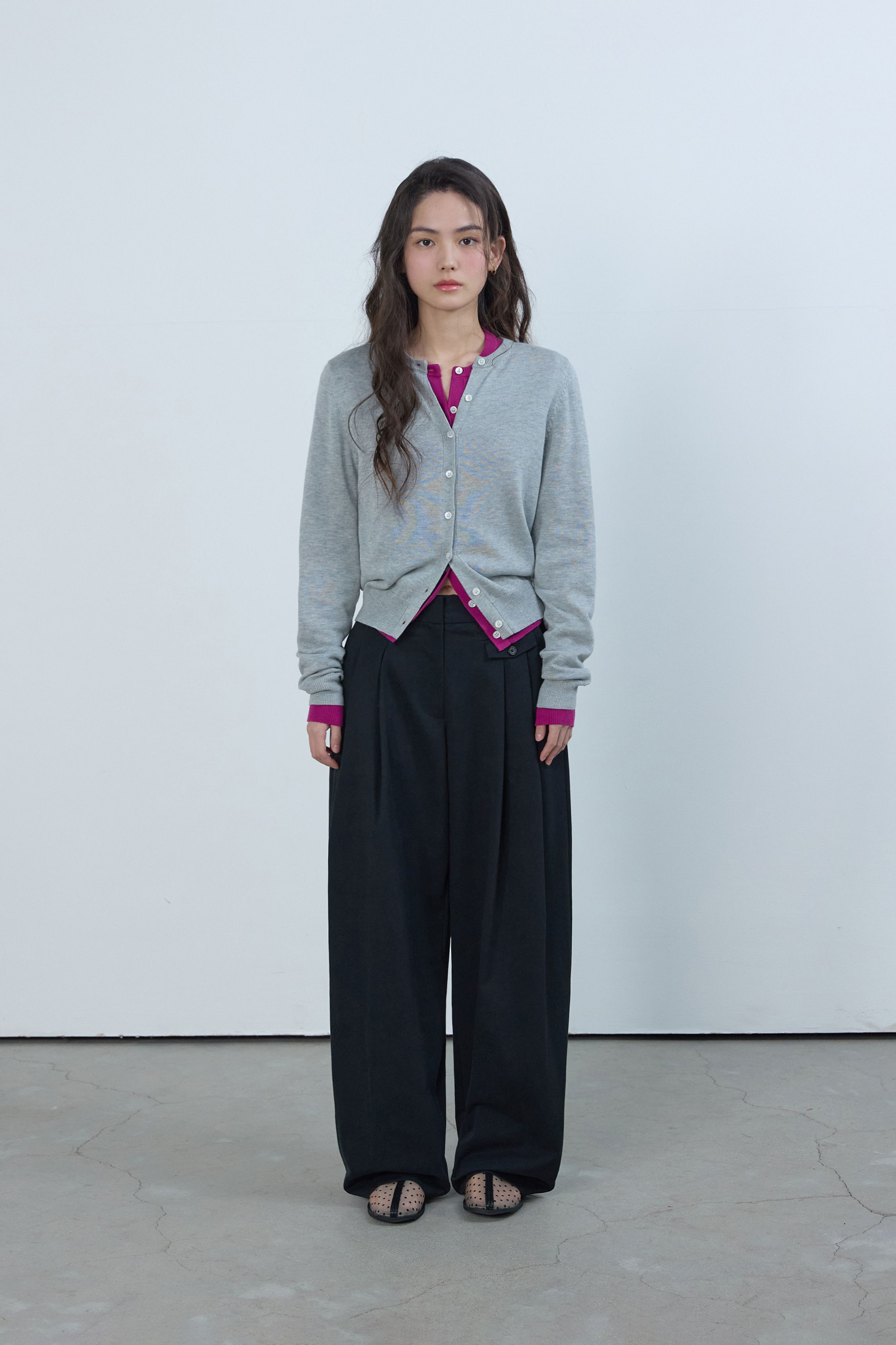 에센셜 라운드 니트 가디건 멜란지 그레이