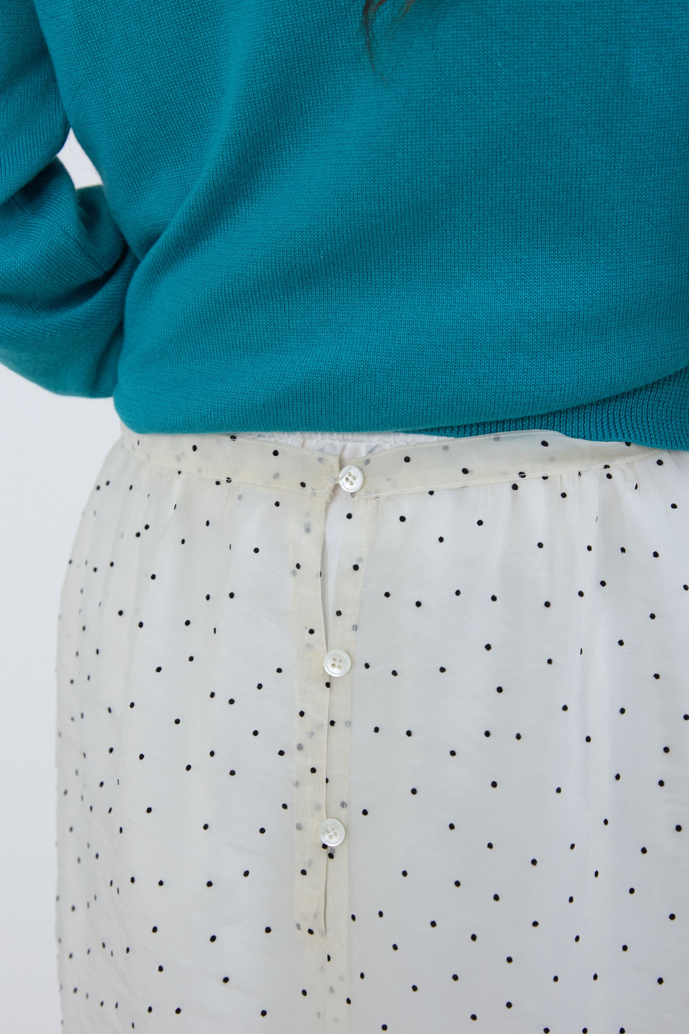 시어 도트 레이어드 미디 스커트 화이트
