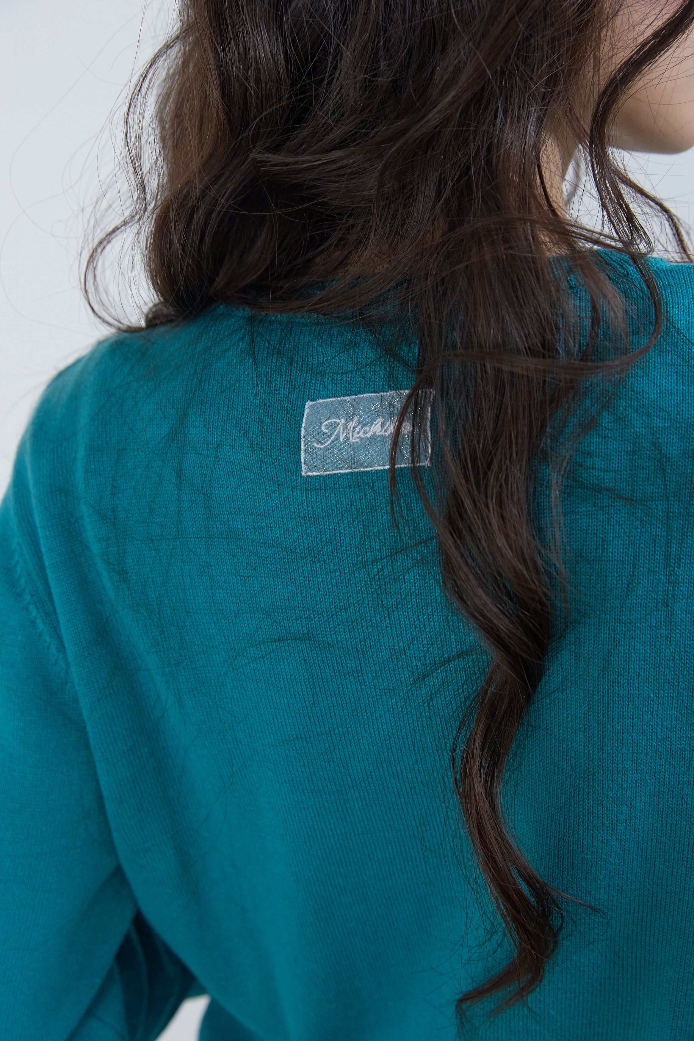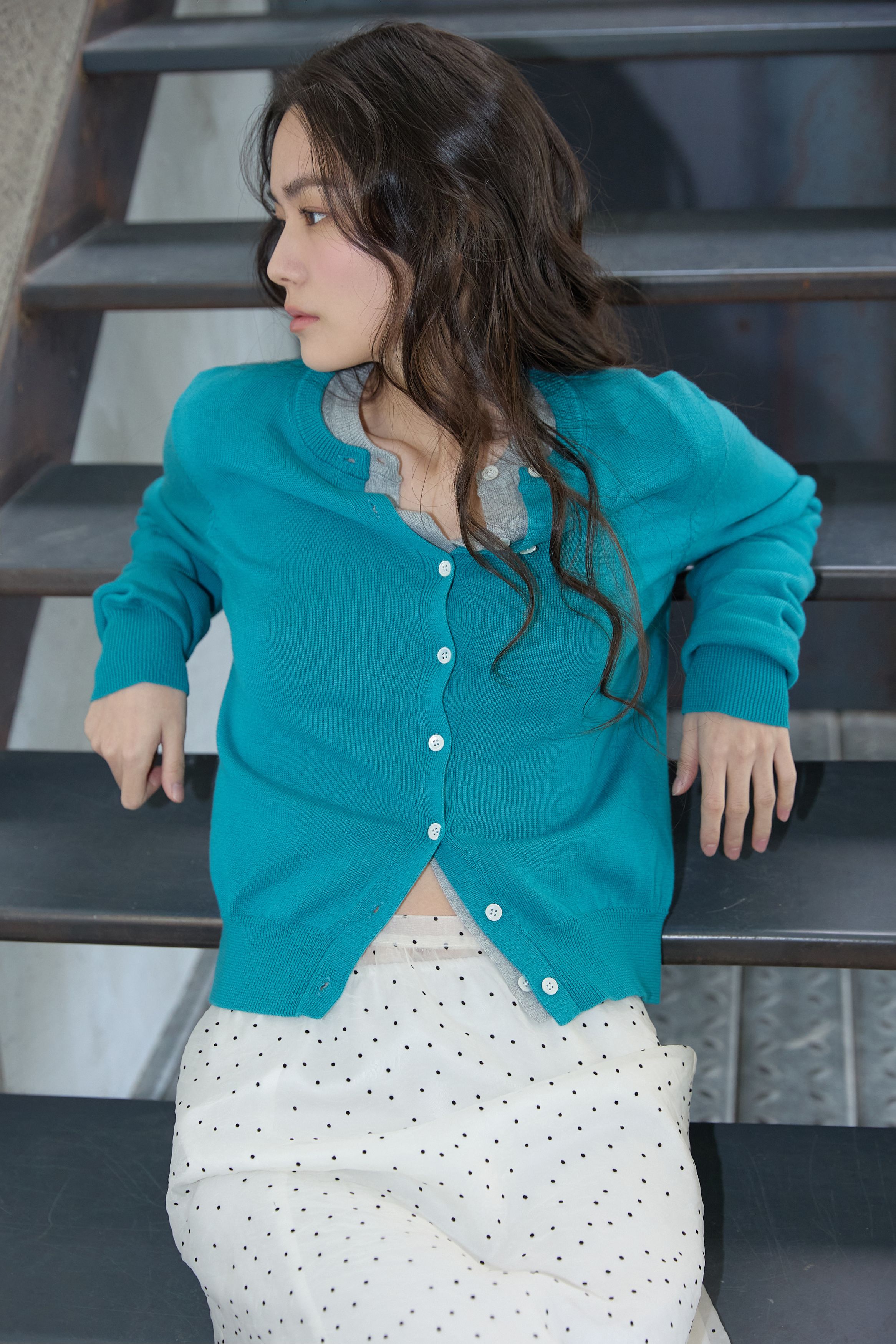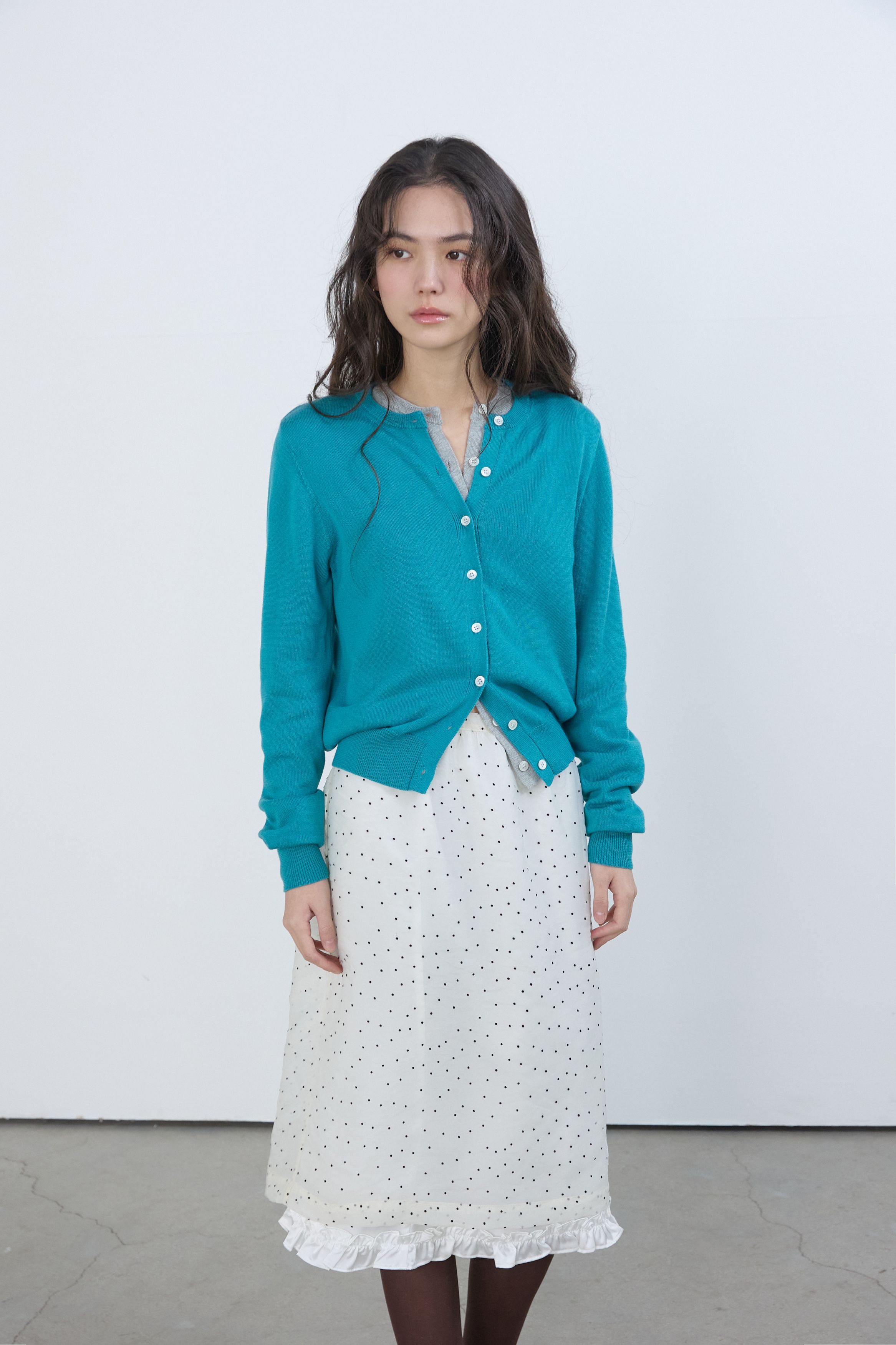에센셜 라운드 니트 가디건 틸 블루
