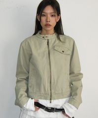 빈티지 샌드 인시전 코튼 워싱 싱글 카라 세미 피티드 라이더 자켓 [ 베이지]