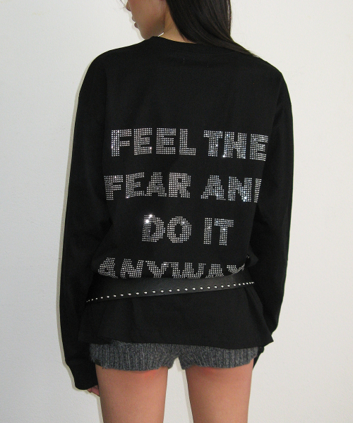비즈 그래픽 아일렛 포인트 코튼 루즈핏 긴팔 롱슬리브 티셔츠 [블랙]