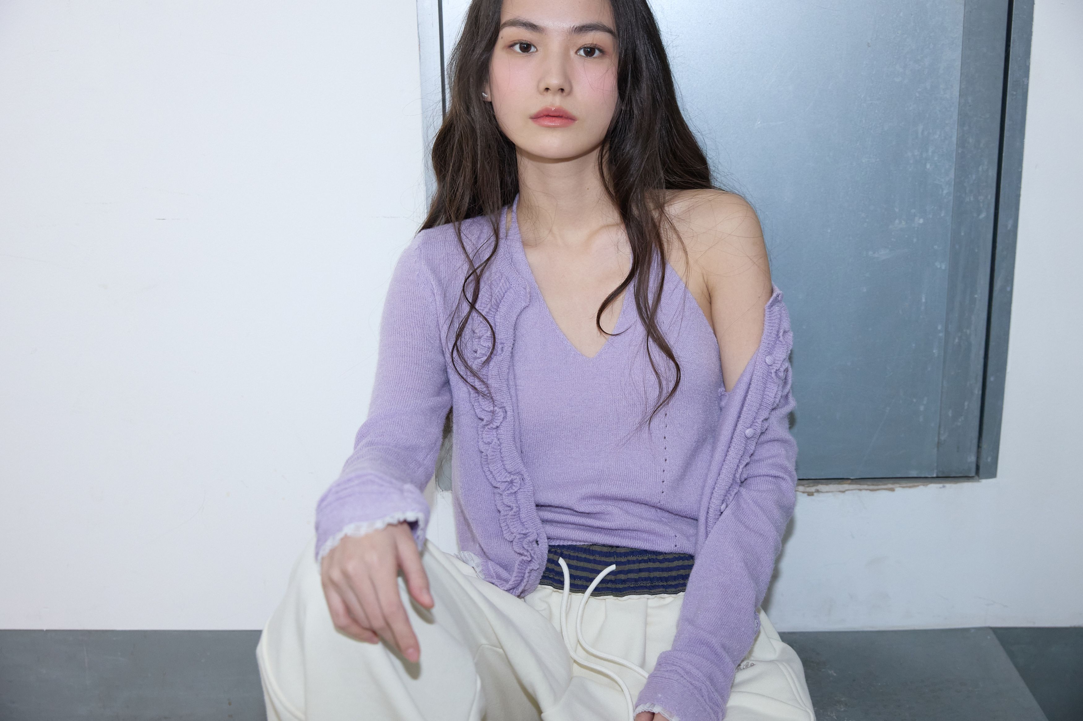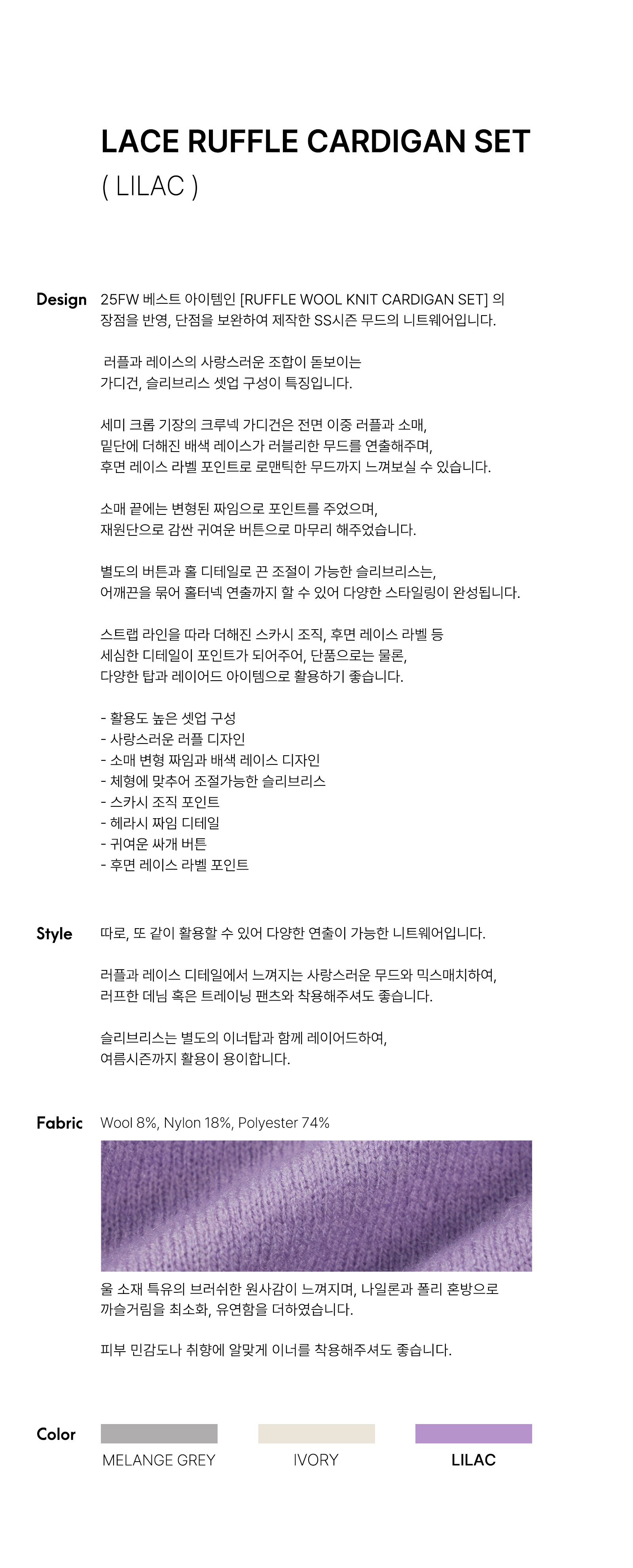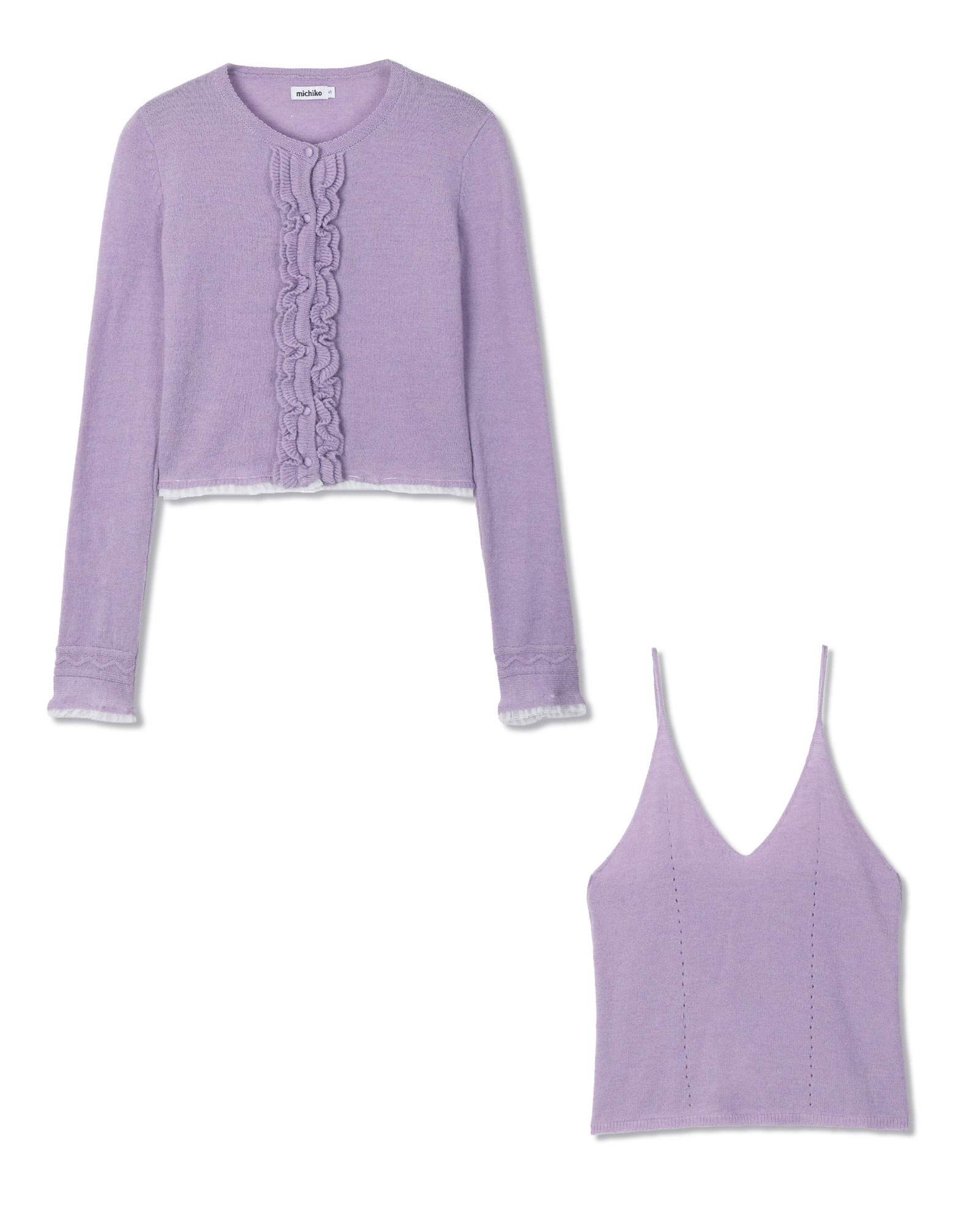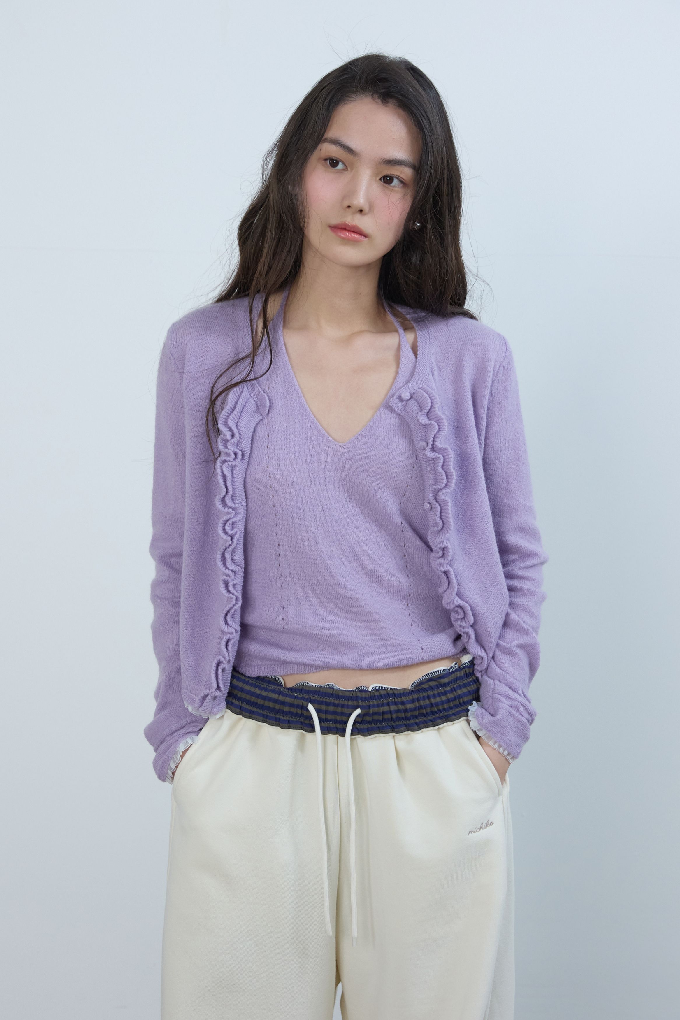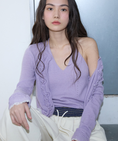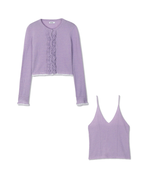 레이스 러플 가디건 세트 라일락