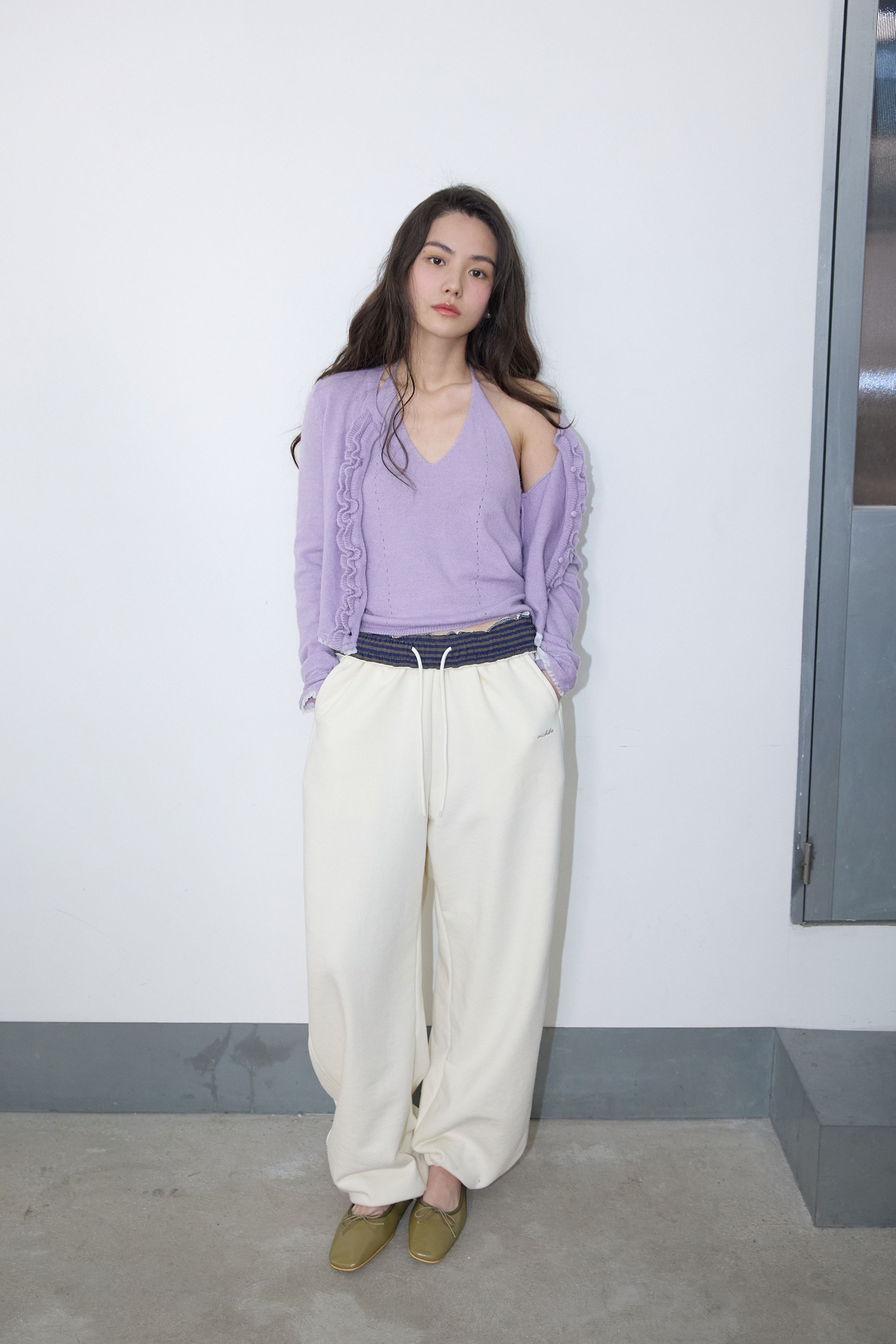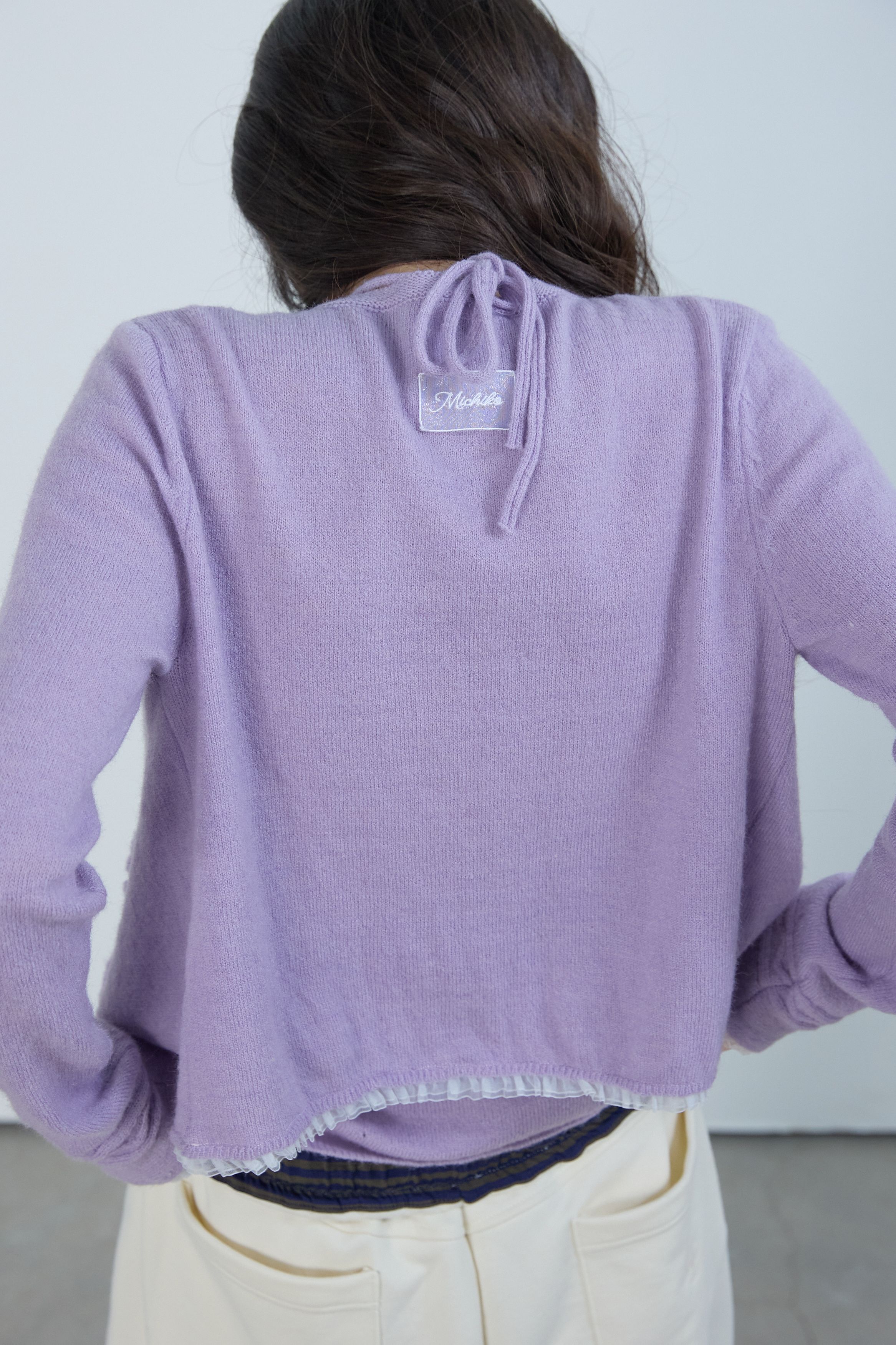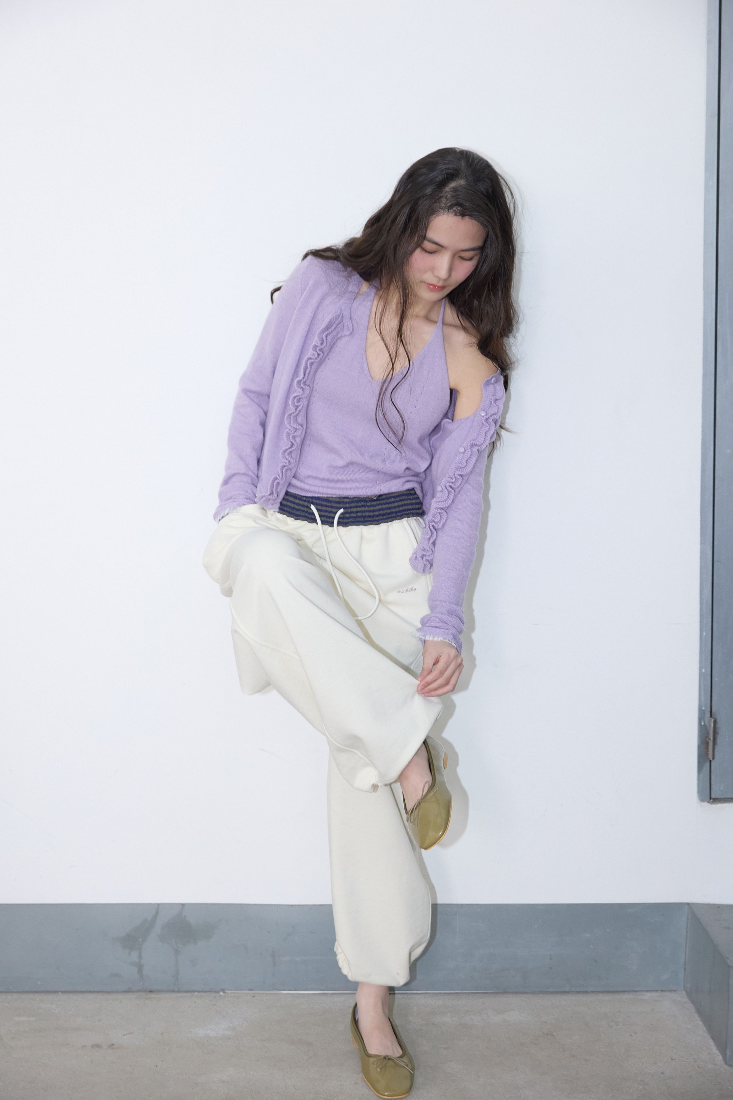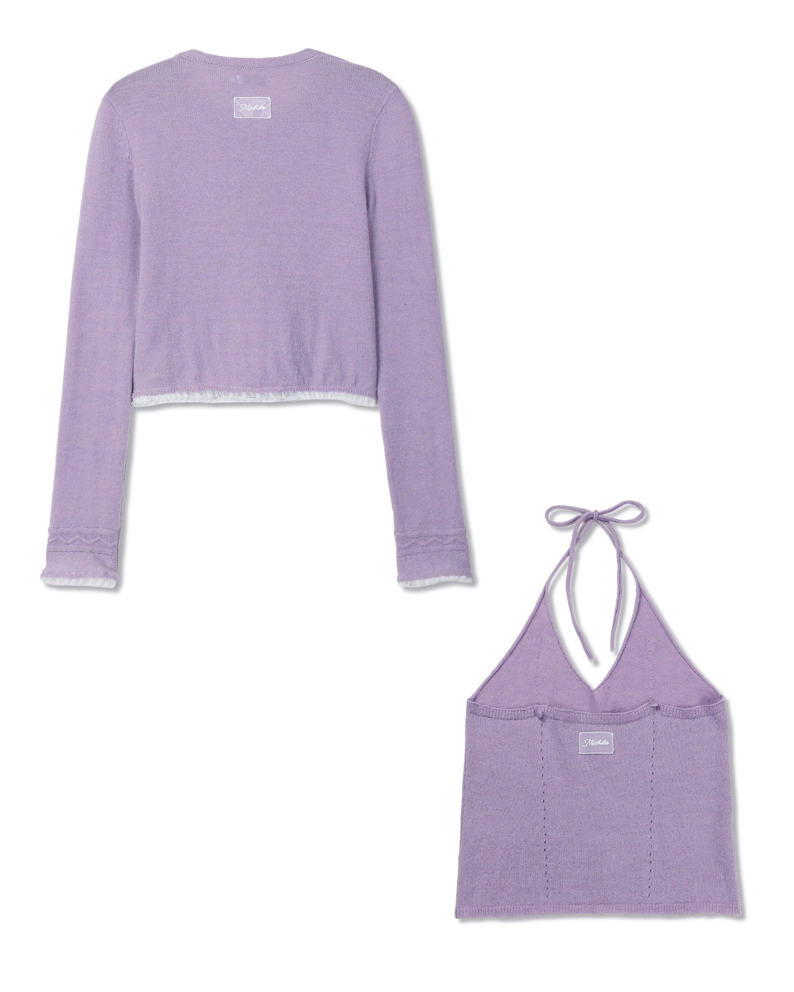 레이스 러플 가디건 세트 라일락