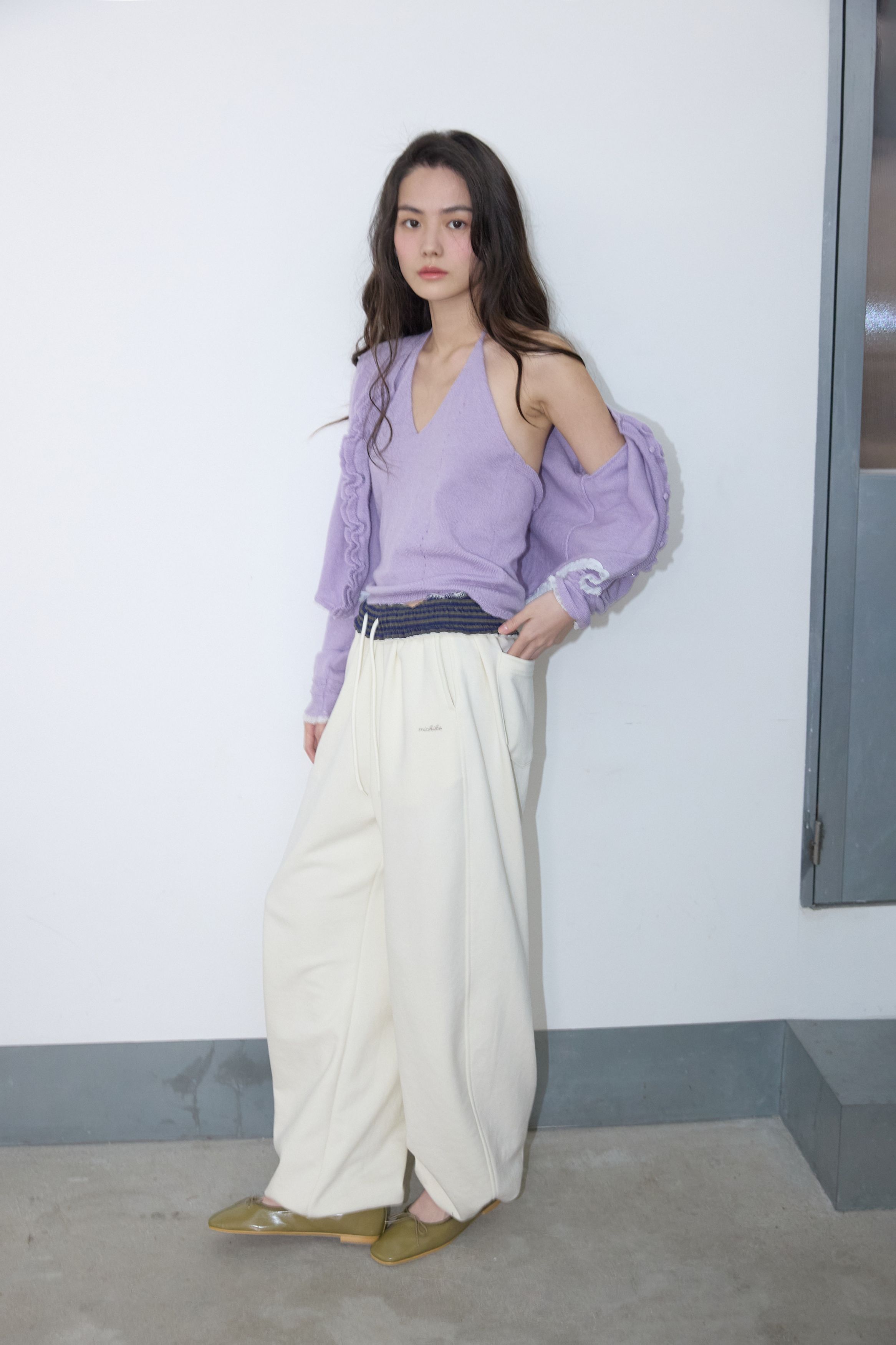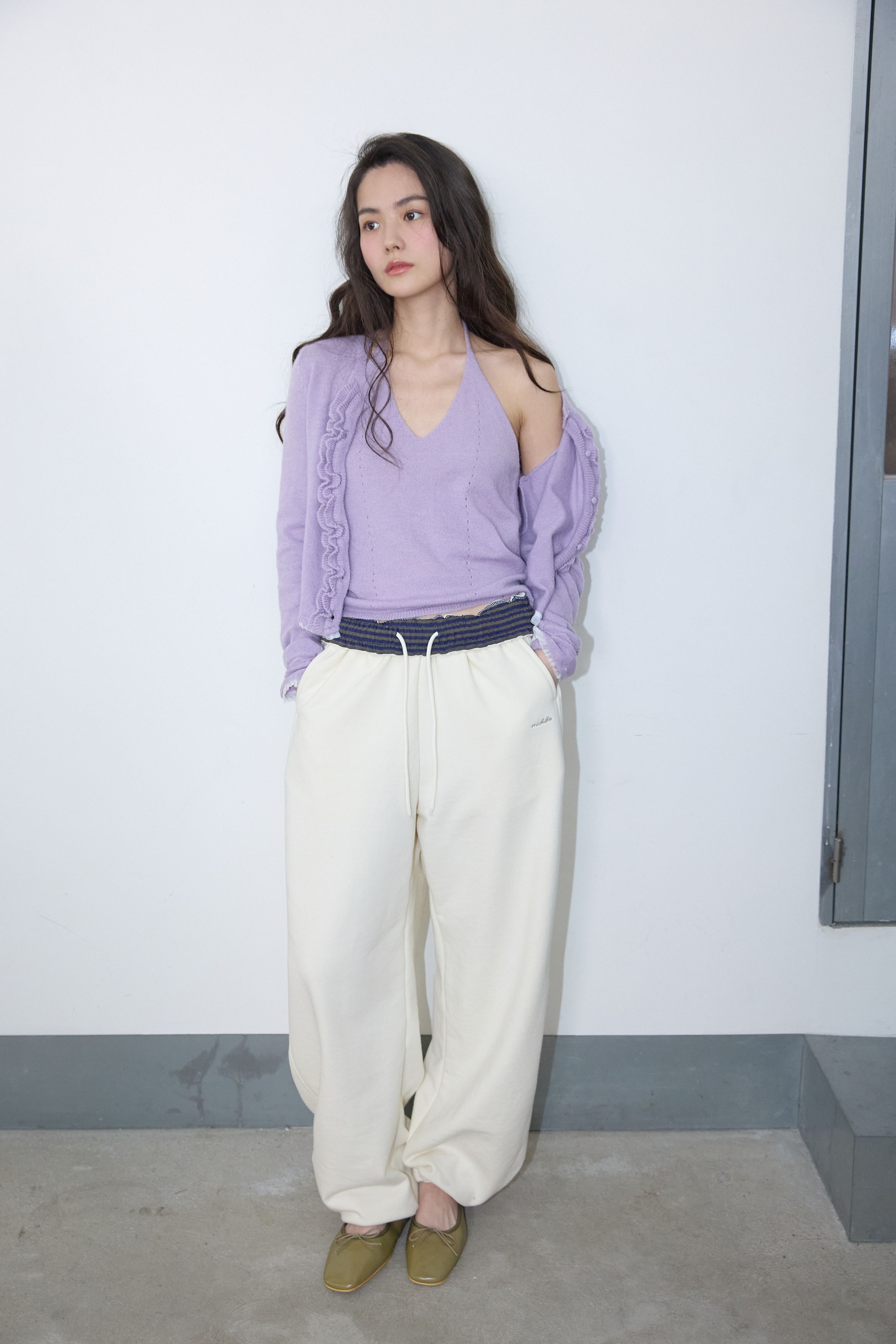 러플 울 니트 가디건 세트 바이올렛