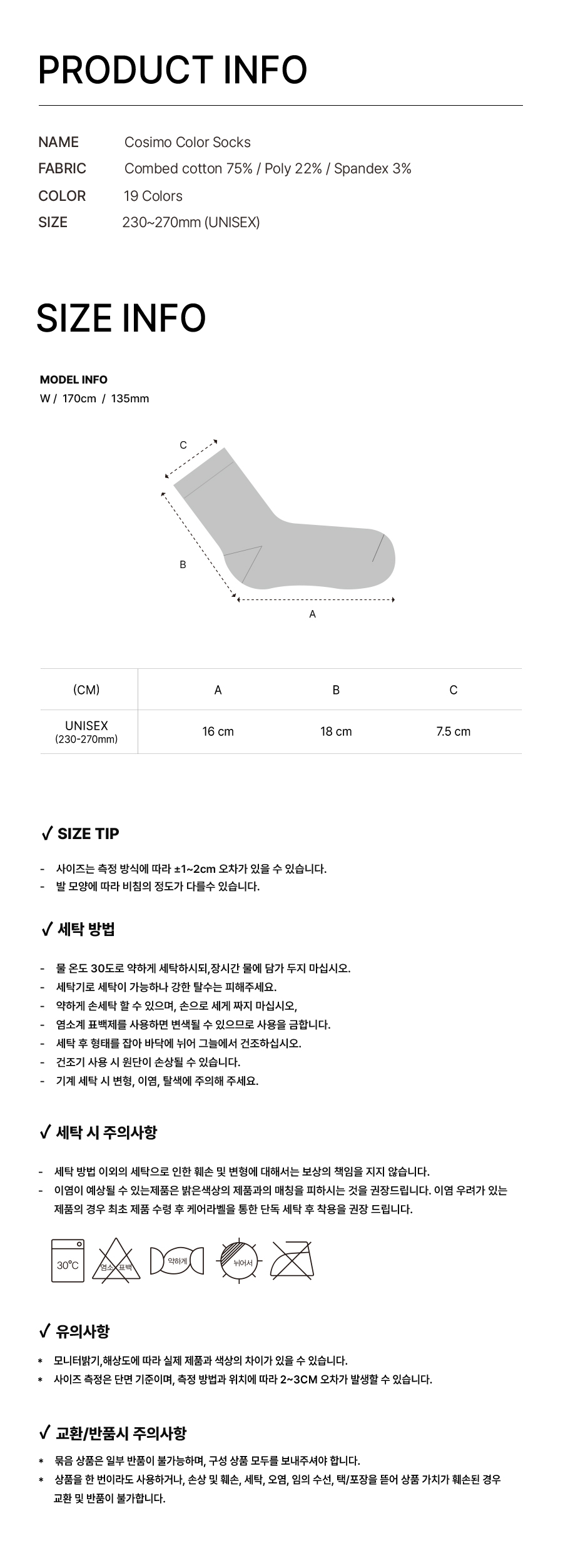 [4pack] 코시모 컬러 삭스_19colors(컬러선택형)