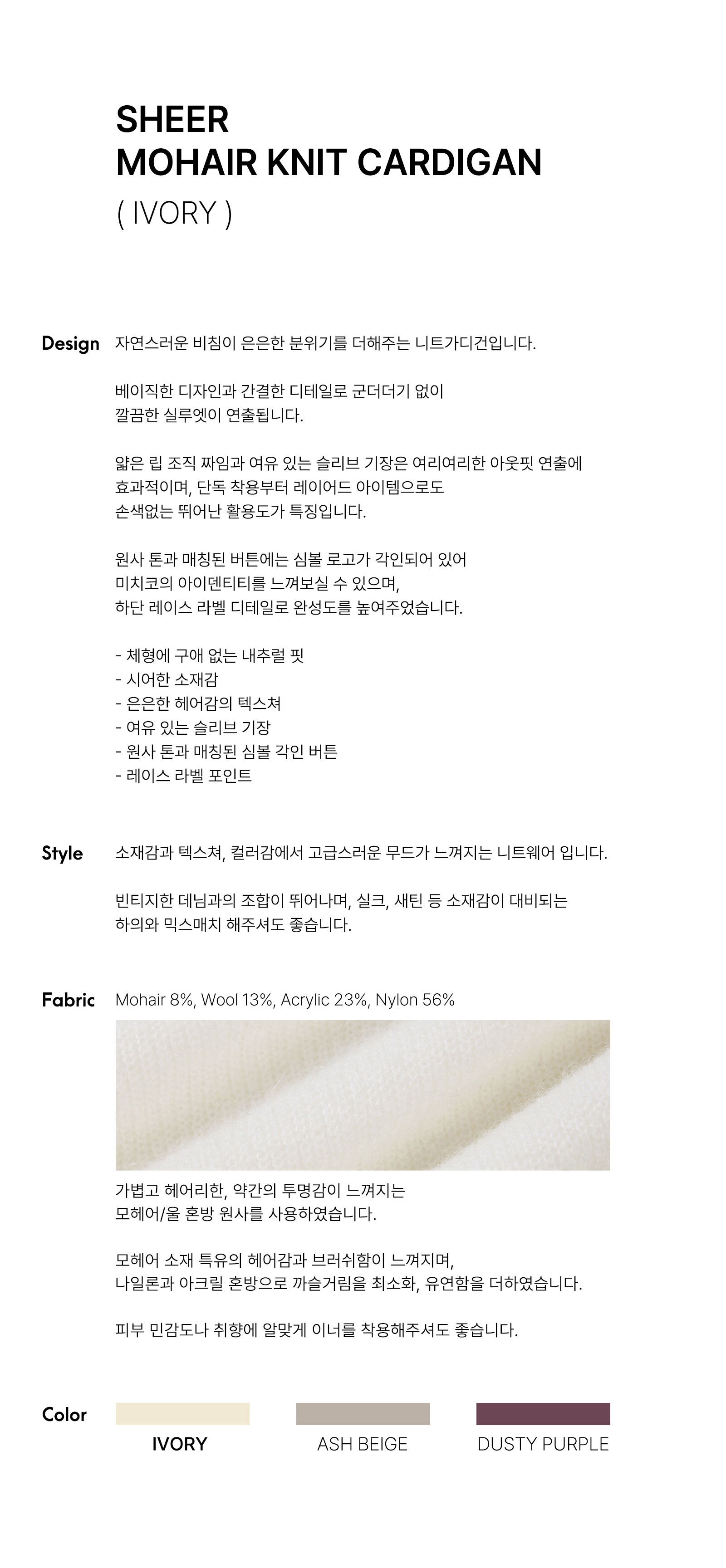 시어 모헤어 니트 가디건 아이보리